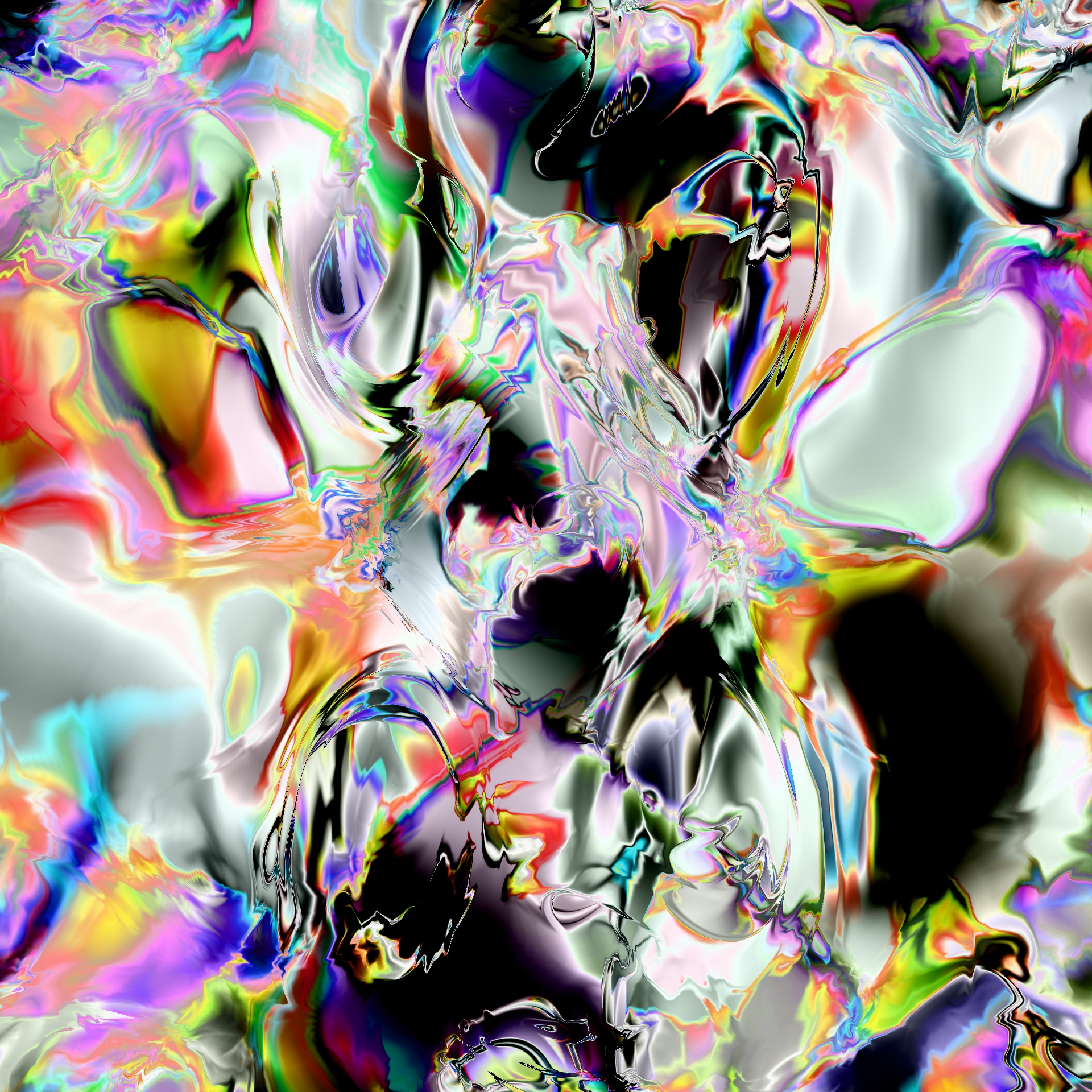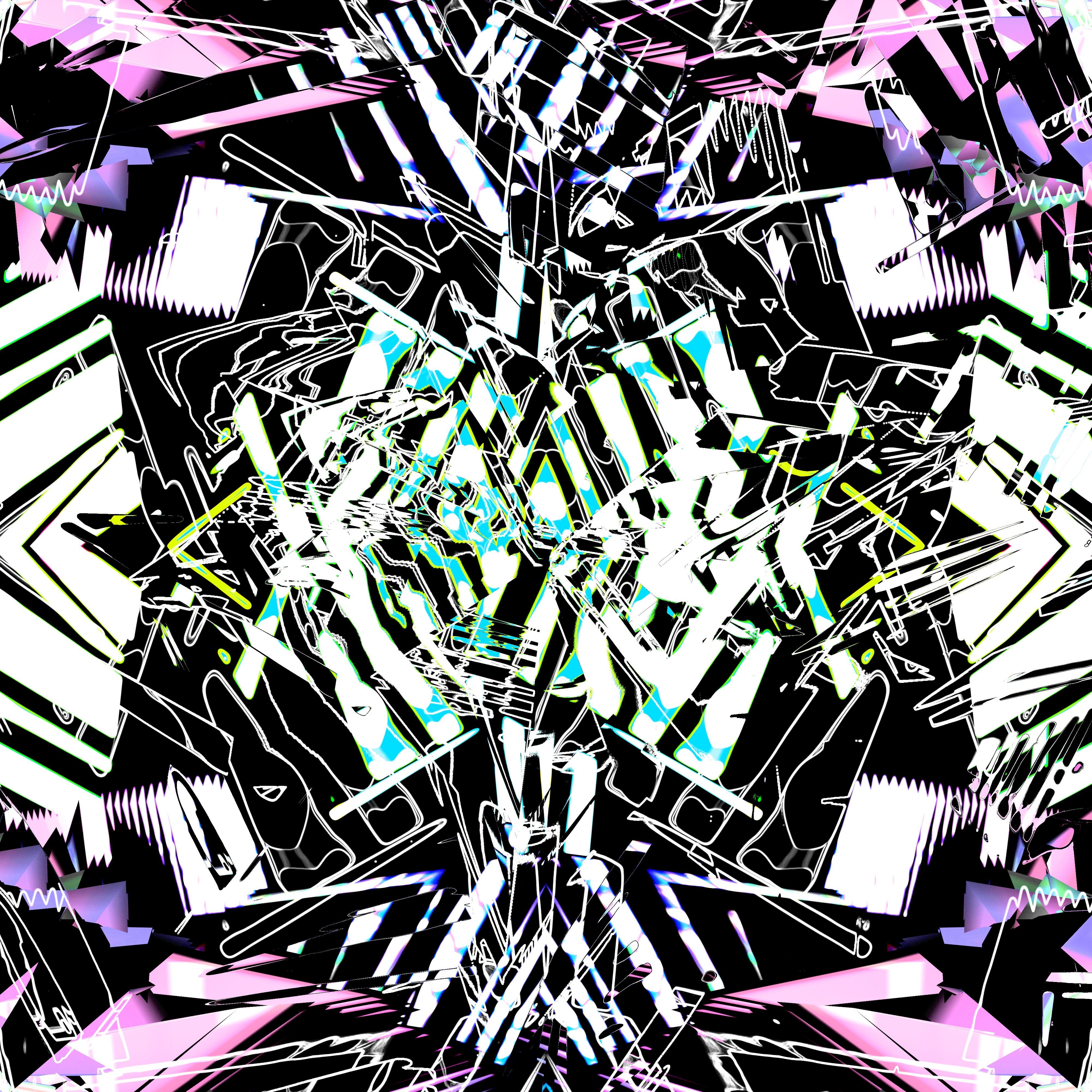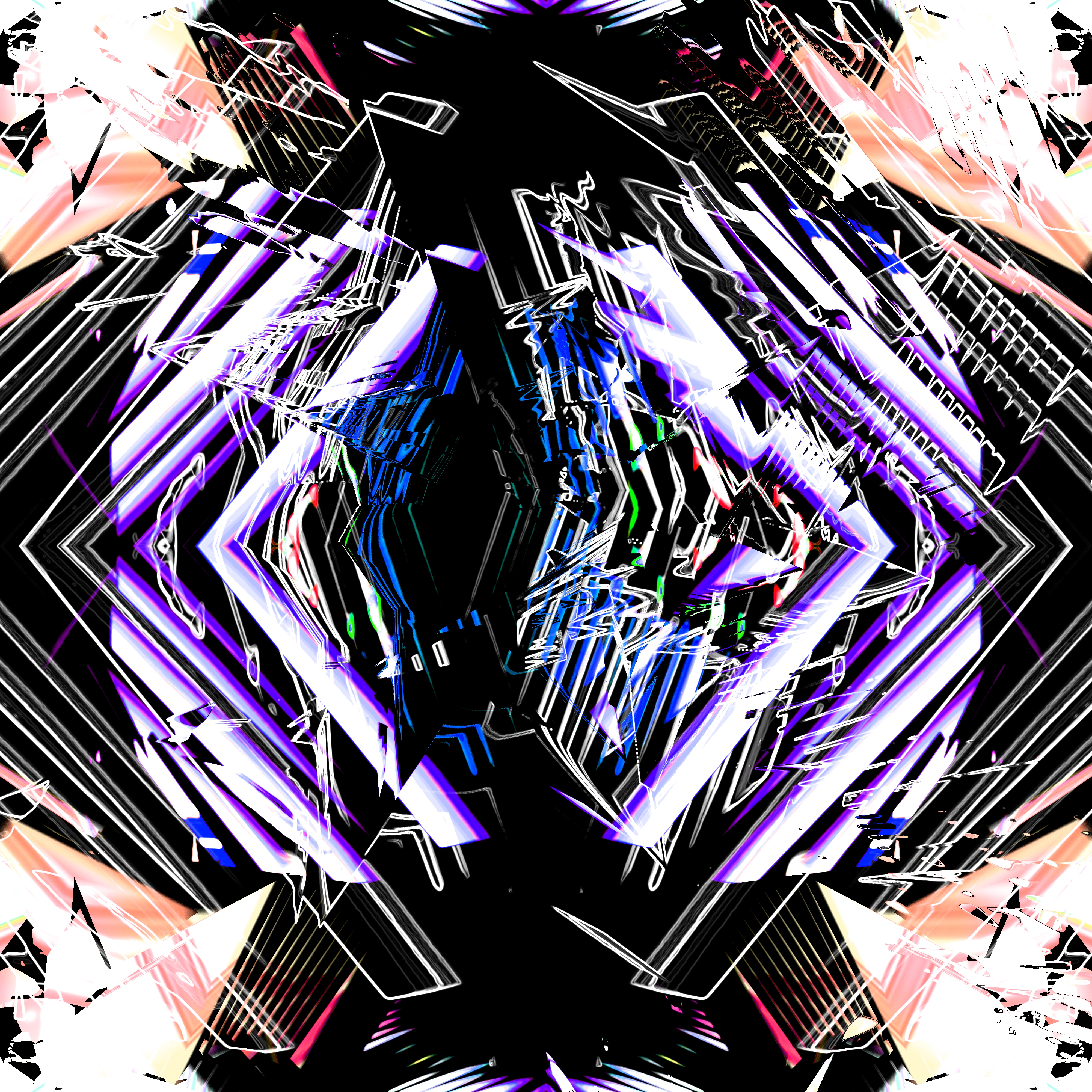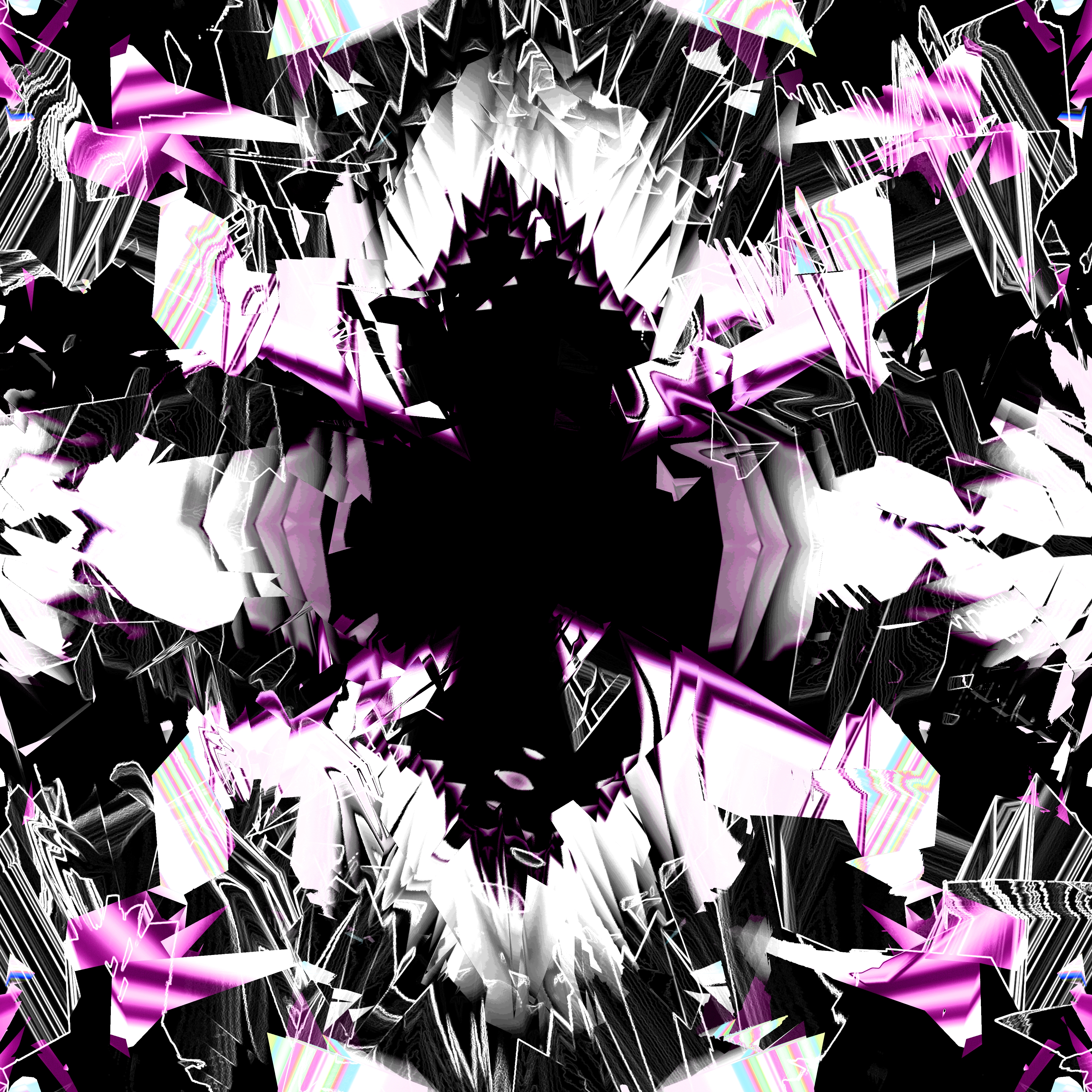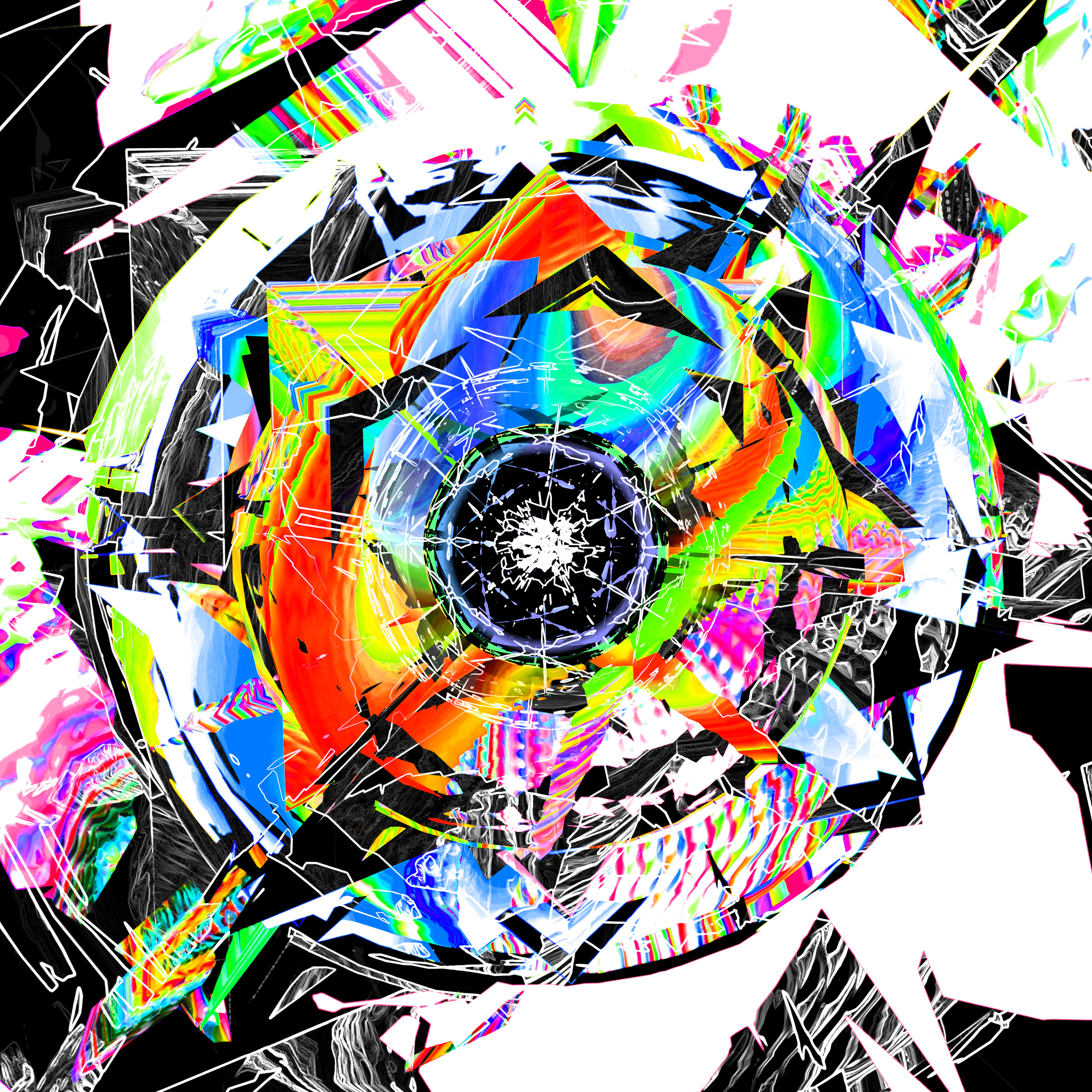 In the art world, we can discover psychedelia by exploring symmetry. But as is often found in the case of a real psychedelic experience, noise, imperfections, and alien imbalance in the visuals play a key role. I strive to avoid a psychedelia that is fitted with straight edges and jagged lines. In this study, I aim to create a psychedelia that is loosely symmetrical and highly colorful- overlapping geometries and colored layers fuse together to generate unexpected hues and forms, while still maintaining a consistent balance of whites, blacks and greys in the composition. While from afar the piece appears to be smooth and flowing by design, looking closely will reveal a deceptively glitchy pixel displacement in certain areas of the piece, giving it a certain digital touch that I love so much.