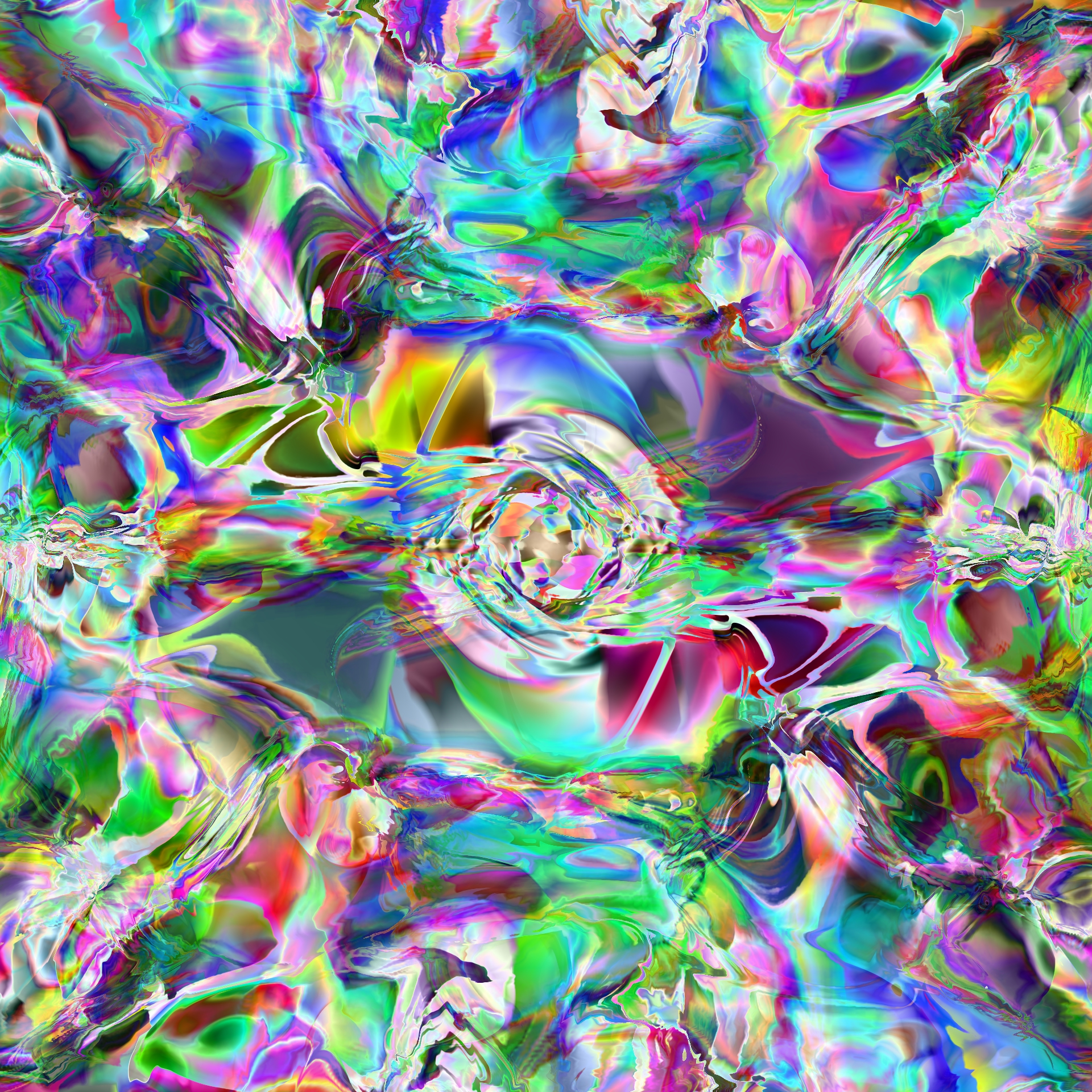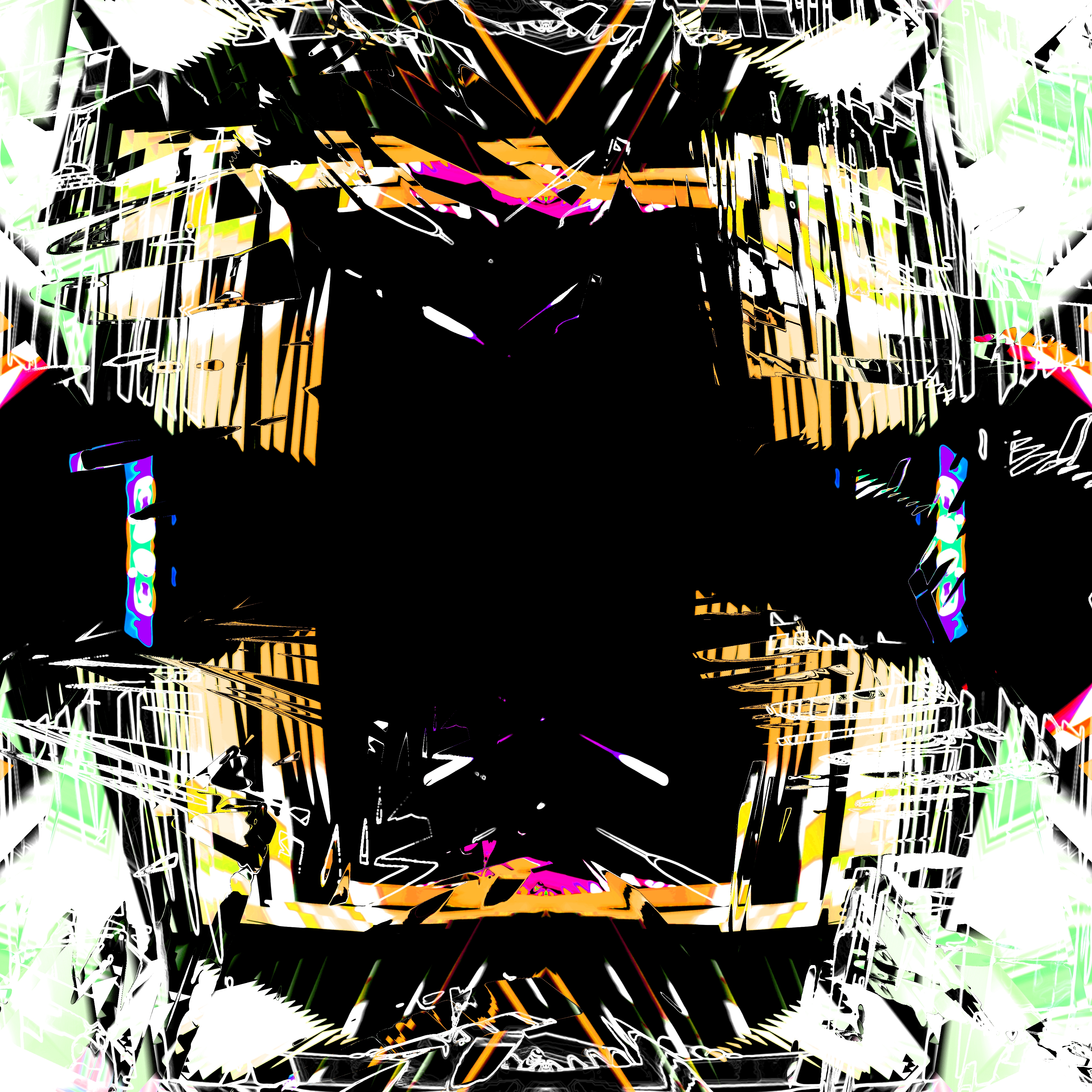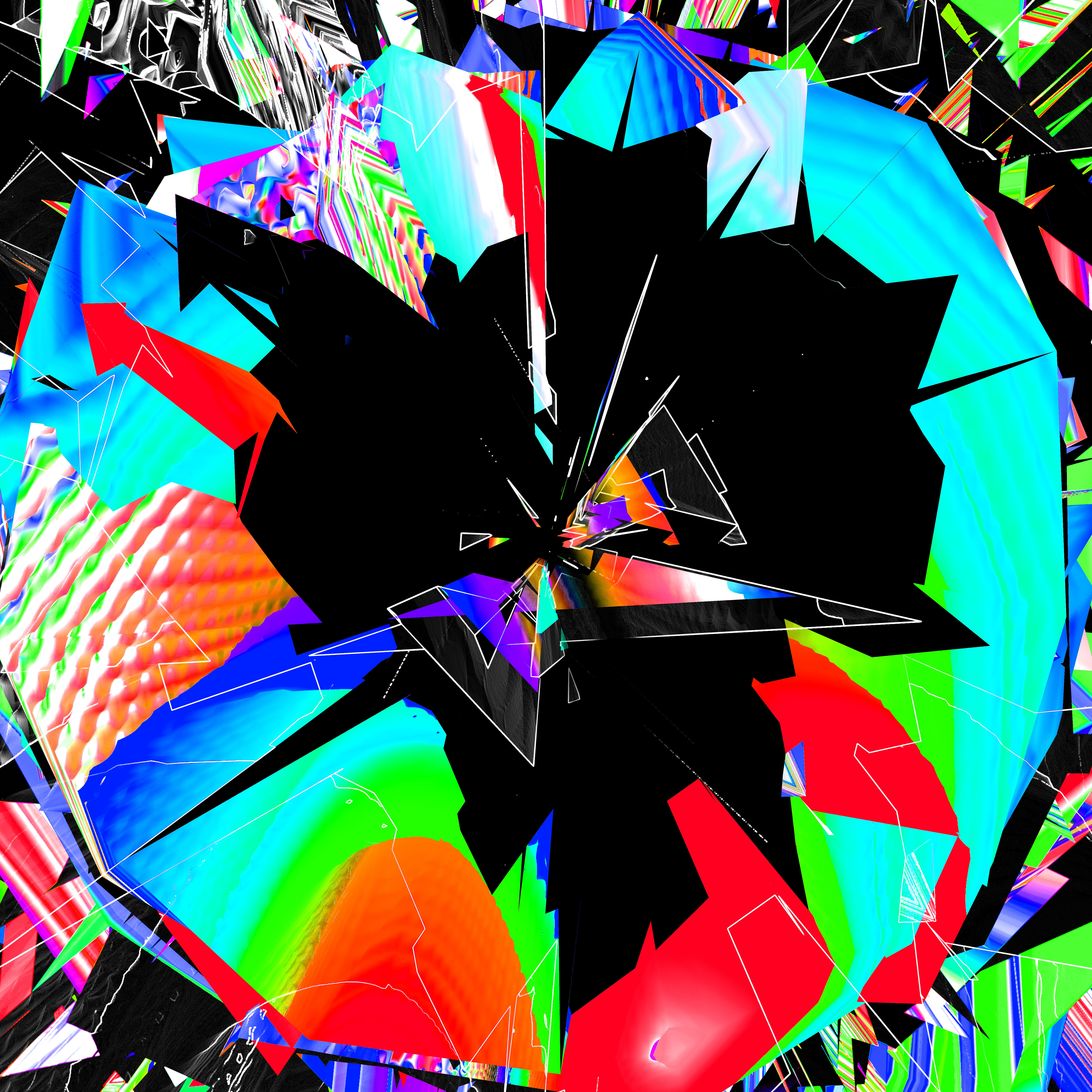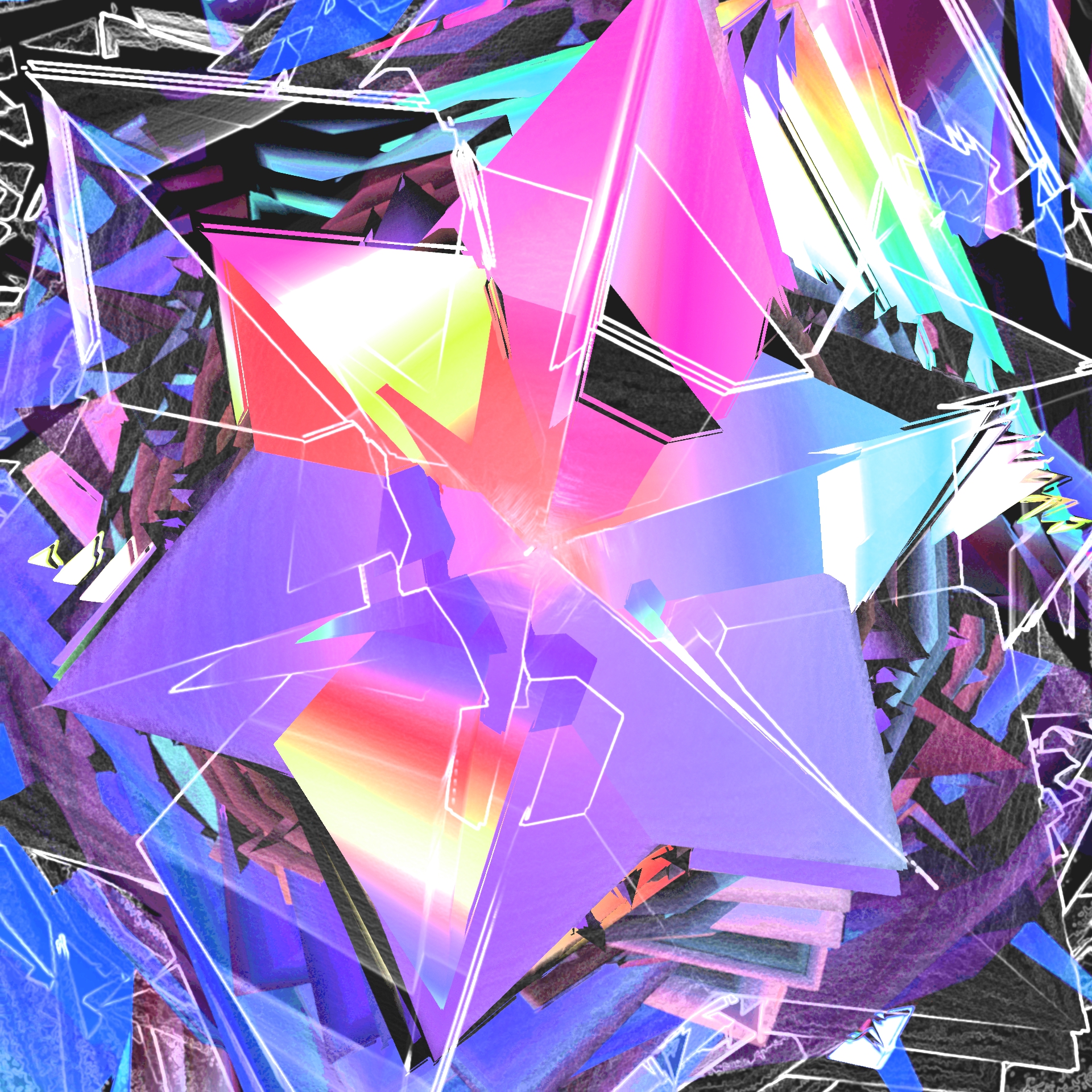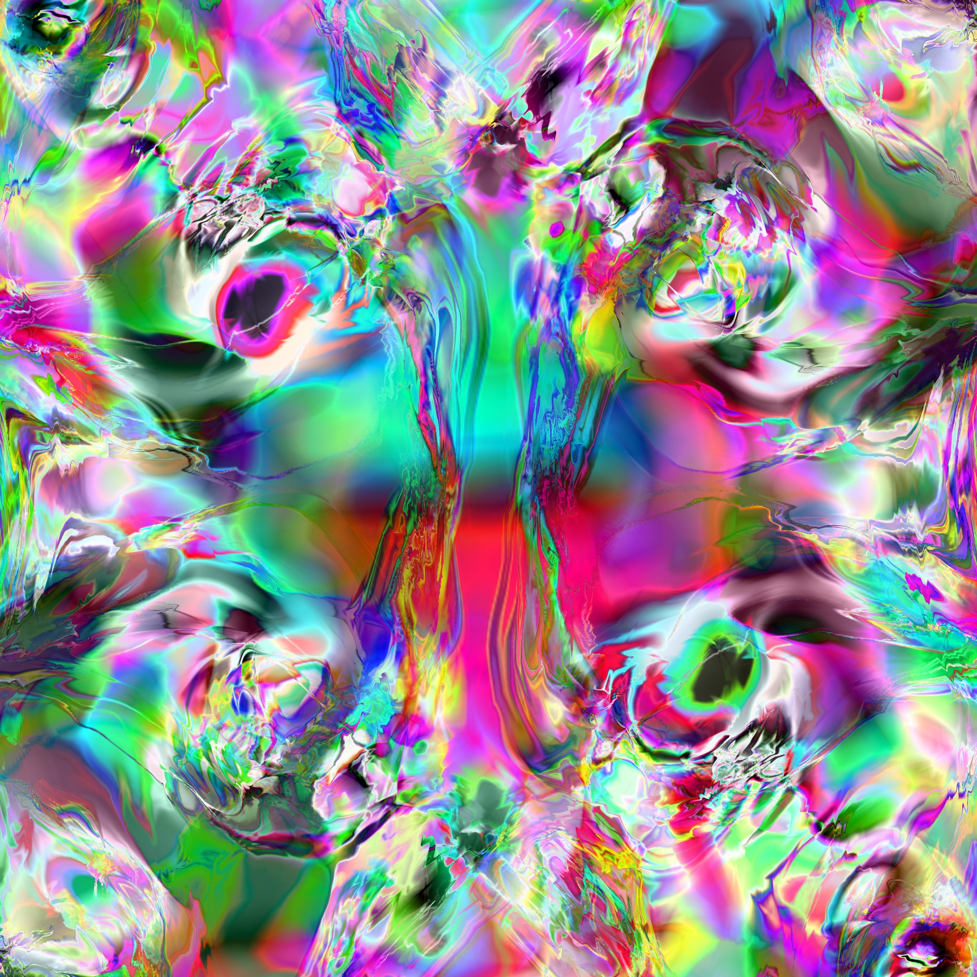 In the art world, we can discover psychedelia by exploring symmetry. But as is often found in the case of a real psychedelic experience, noise, imperfections, and alien imbalance in the visuals play a key role. I strive to avoid a psychedelia that is fitted with straight edges and jagged lines. In this study, I aim to create a psychedelia that is loosely symmetrical and highly colorful- overlapping geometries and colored layers fuse together to generate unexpected hues and forms, while still maintaining a consistent balance of whites, blacks and greys in the composition. While from afar the piece appears to be smooth and flowing by design, looking closely will reveal a deceptively glitchy pixel displacement in certain areas of the piece, giving it a certain digital touch that I love so much.