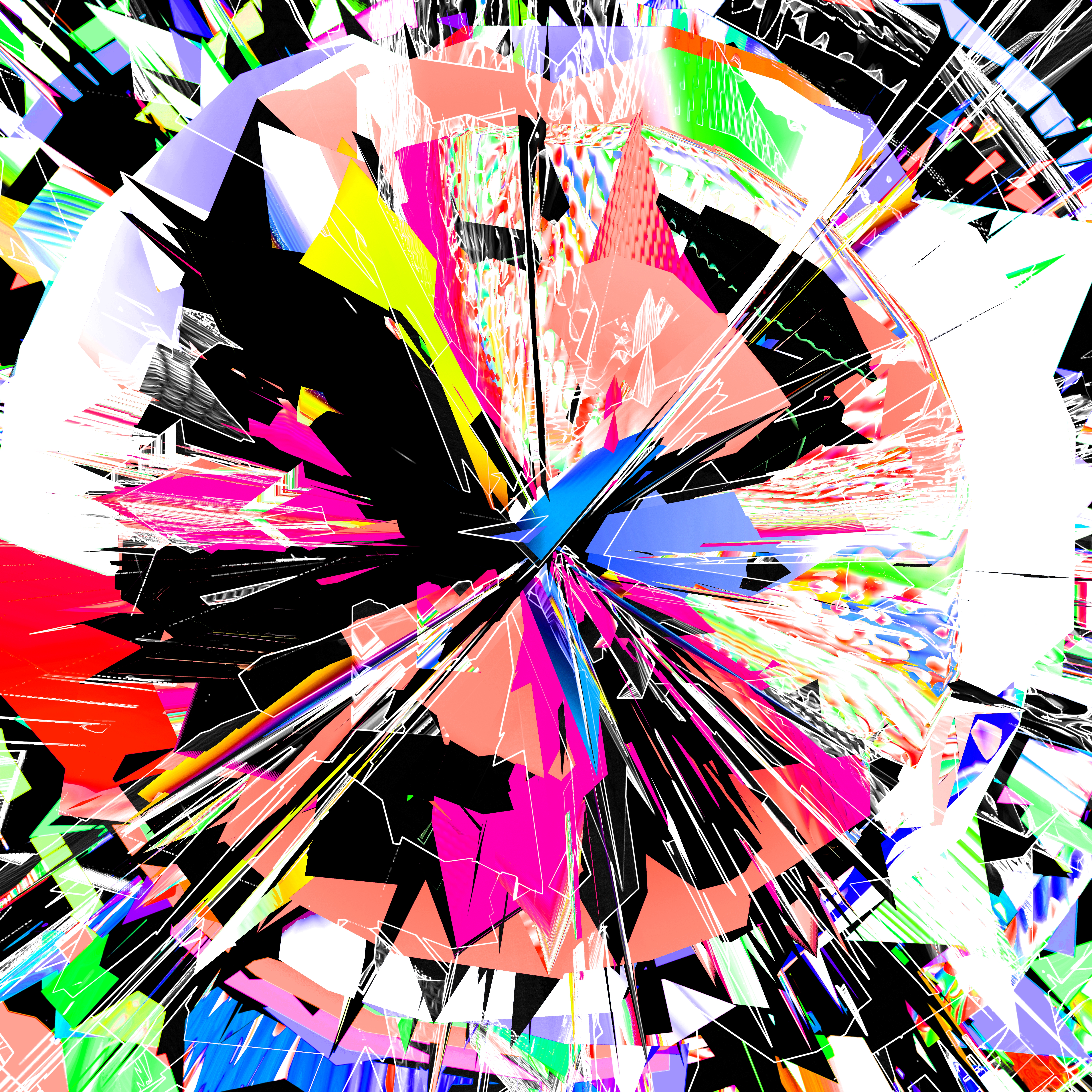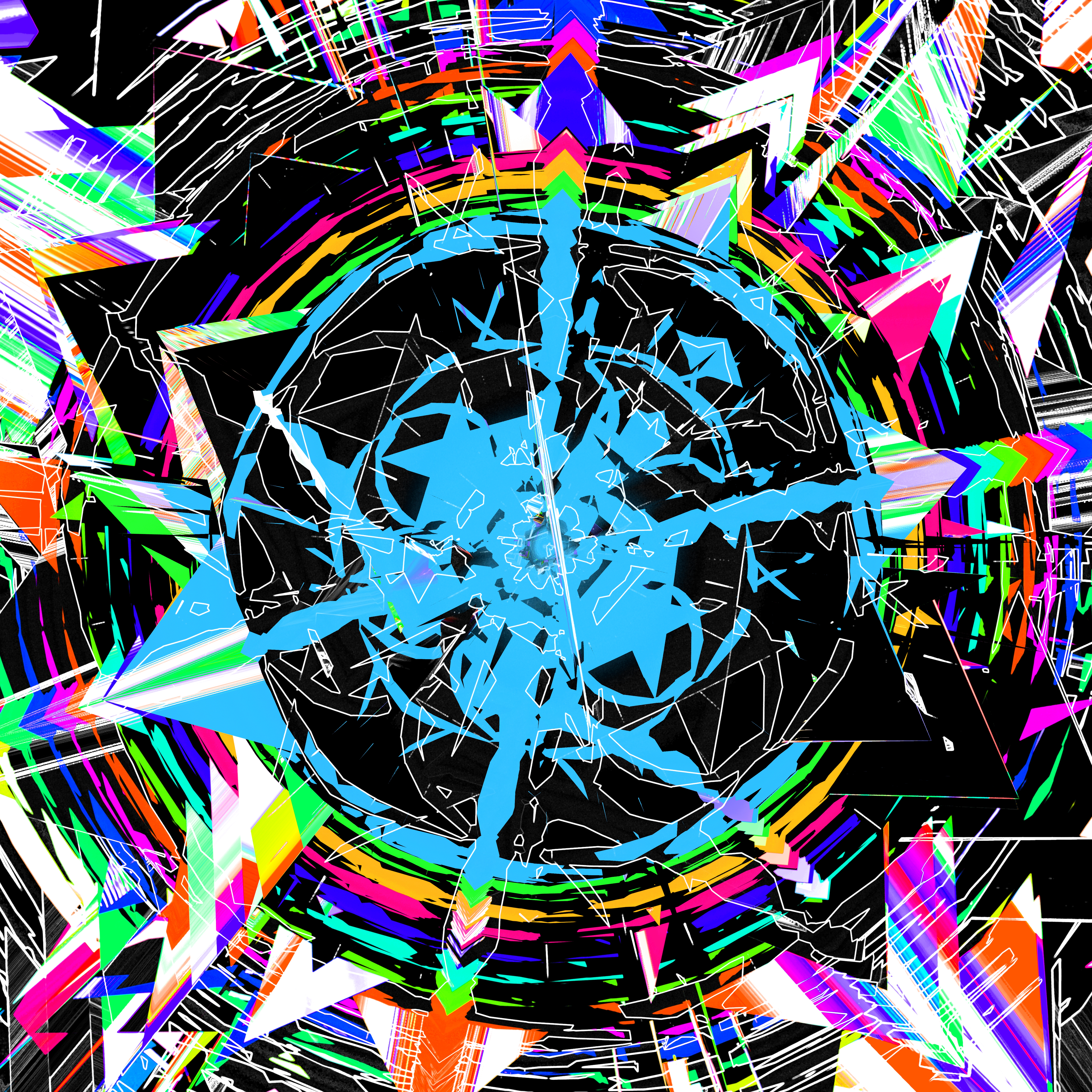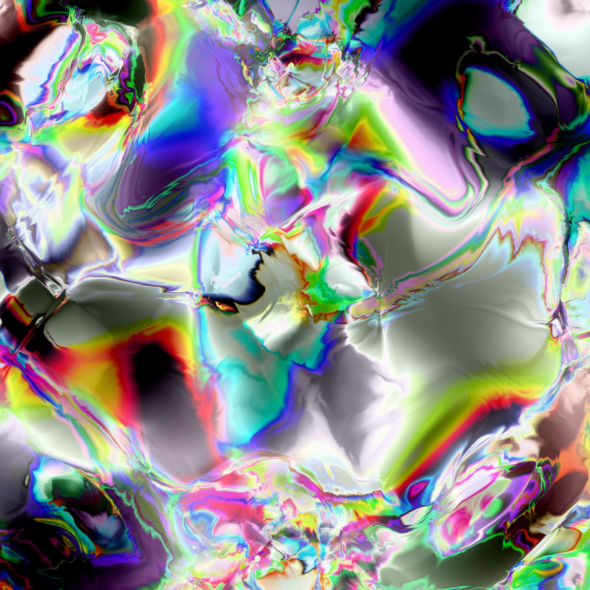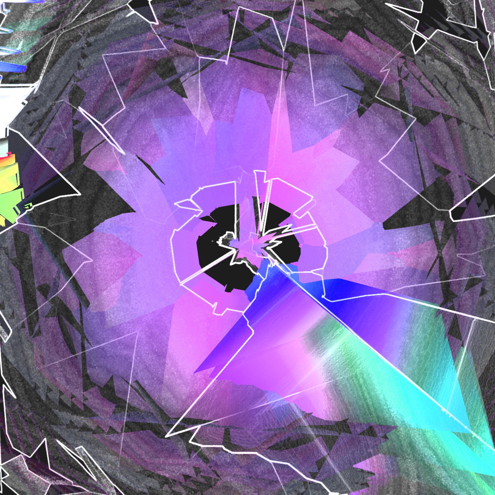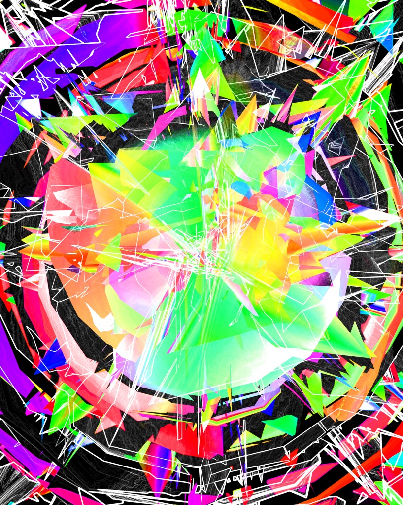 In the art world, we can discover psychedelia by exploring symmetry. But as is often found in the case of a real psychedelic experience, noise, imperfections, and alien imbalance in the visuals play a key role. I strive to avoid a psychedelia that is fitted with straight edges and jagged lines. In this study, I aim to create a psychedelia that is loosely symmetrical and highly colorful- overlapping geometries and colored layers fuse together to generate unexpected hues and forms, while still maintaining a consistent balance of whites, blacks and greys in the composition. While from afar the piece appears to be smooth and flowing by design, looking closely will reveal a deceptively glitchy pixel displacement in certain areas of the piece, giving it a certain digital touch that I love so much.
