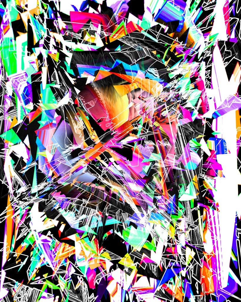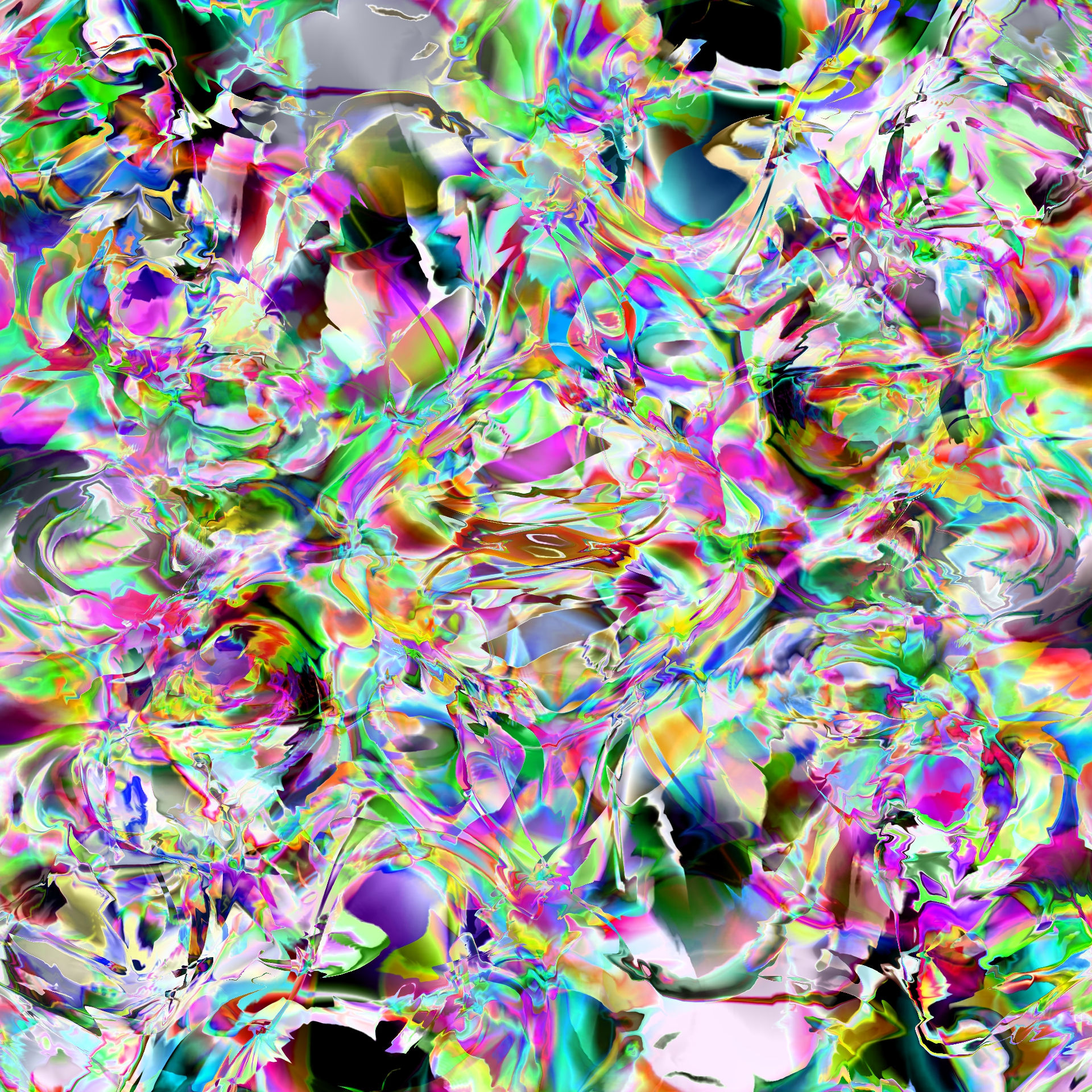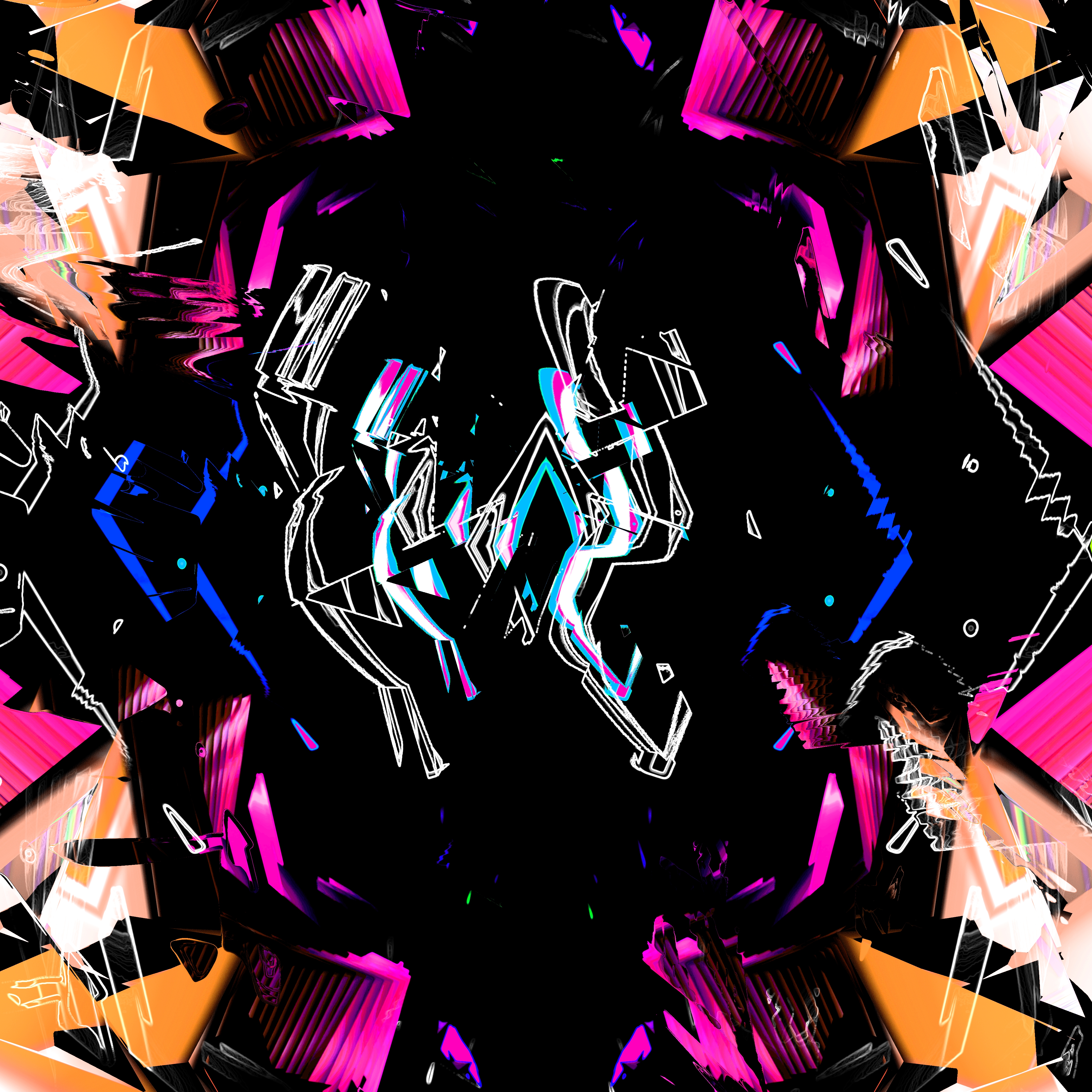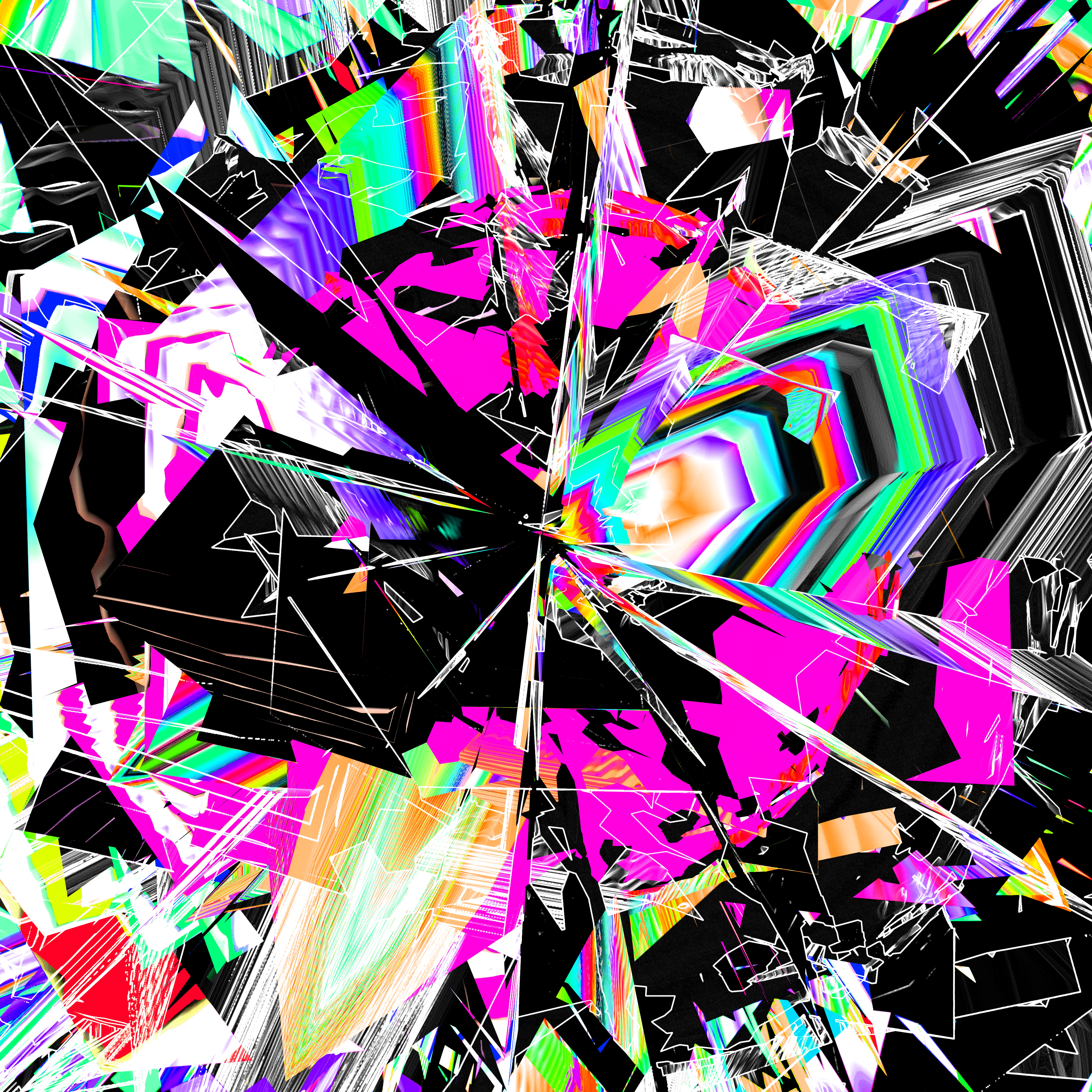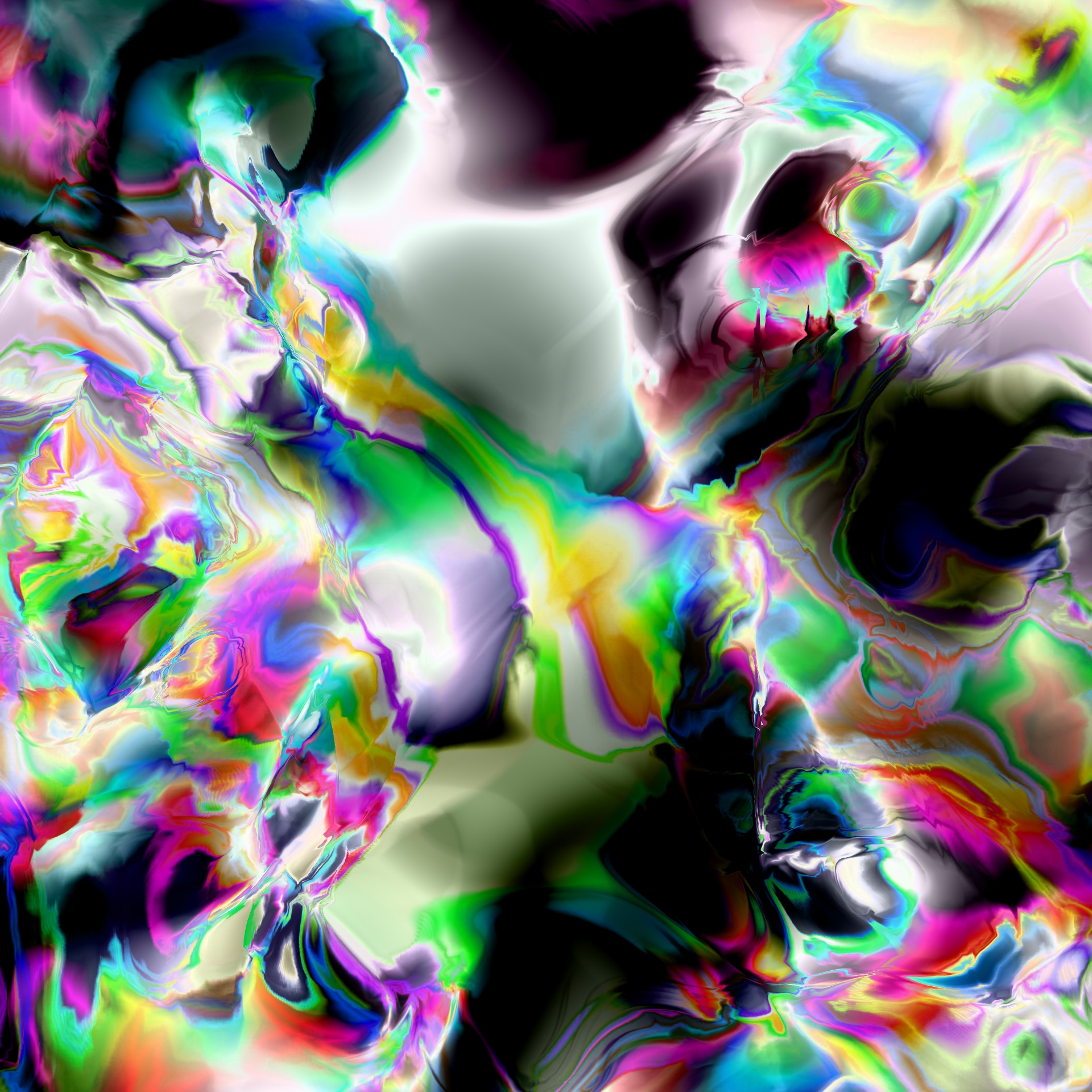 In the art world, we can discover psychedelia by exploring symmetry. But as is often found in the case of a real psychedelic experience, noise, imperfections, and alien imbalance in the visuals play a key role. I strive to avoid a psychedelia that is fitted with straight edges and jagged lines. In this study, I aim to create a psychedelia that is loosely symmetrical and highly colorful- overlapping geometries and colored layers fuse together to generate unexpected hues and forms, while still maintaining a consistent balance of whites, blacks and greys in the composition. While from afar the piece appears to be smooth and flowing by design, looking closely will reveal a deceptively glitchy pixel displacement in certain areas of the piece, giving it a certain digital touch that I love so much.