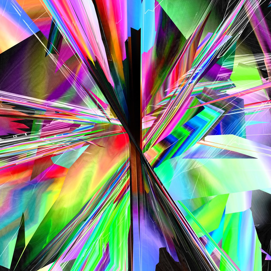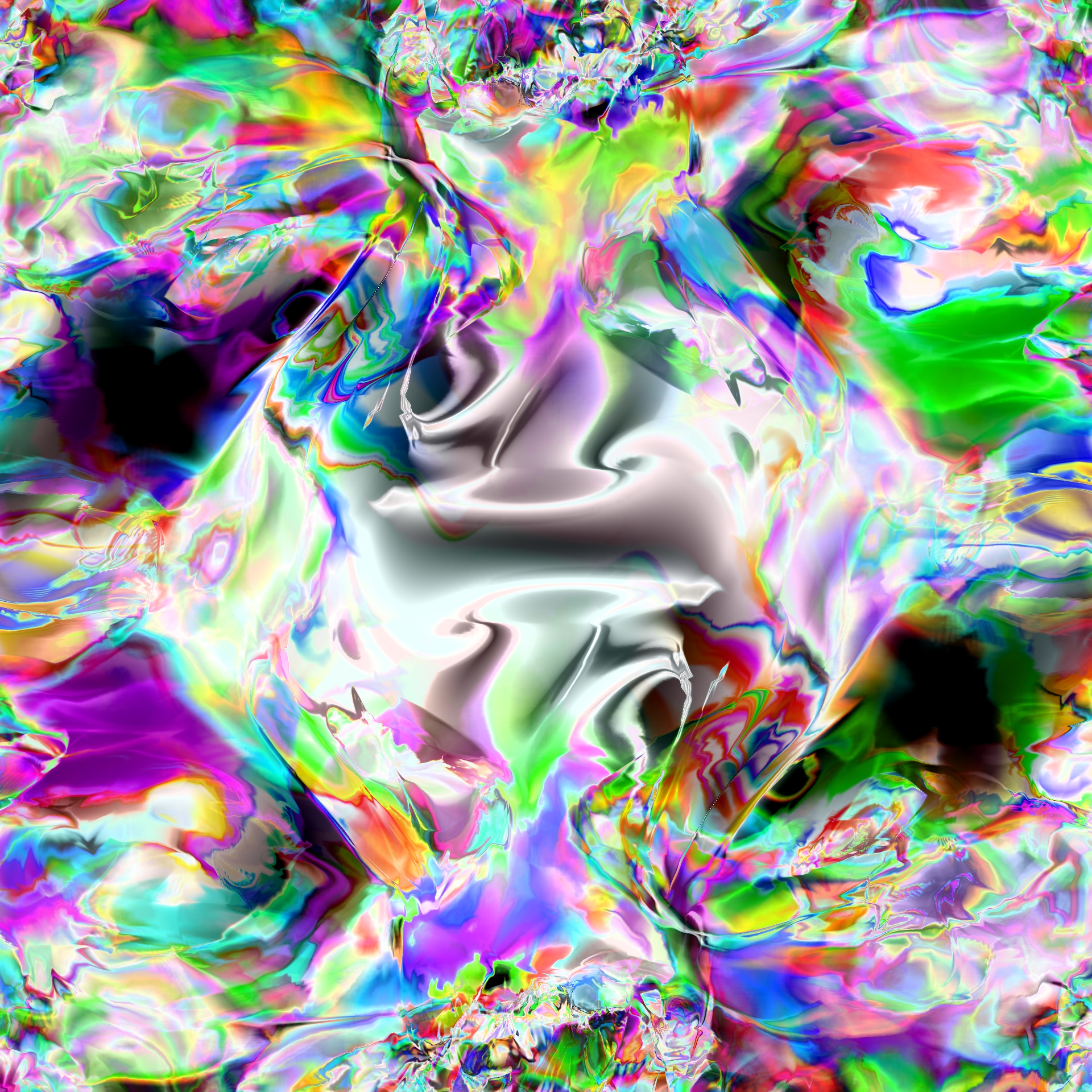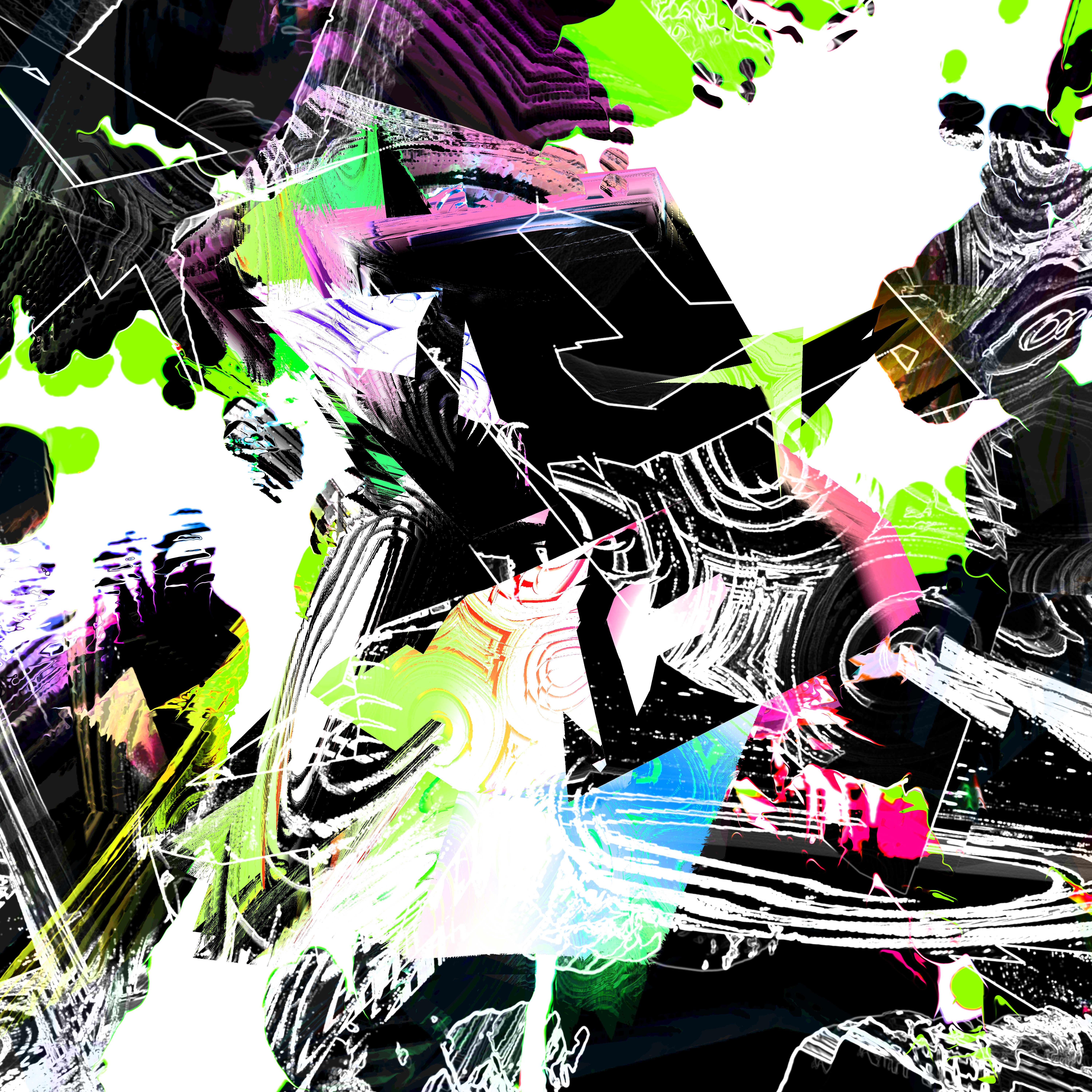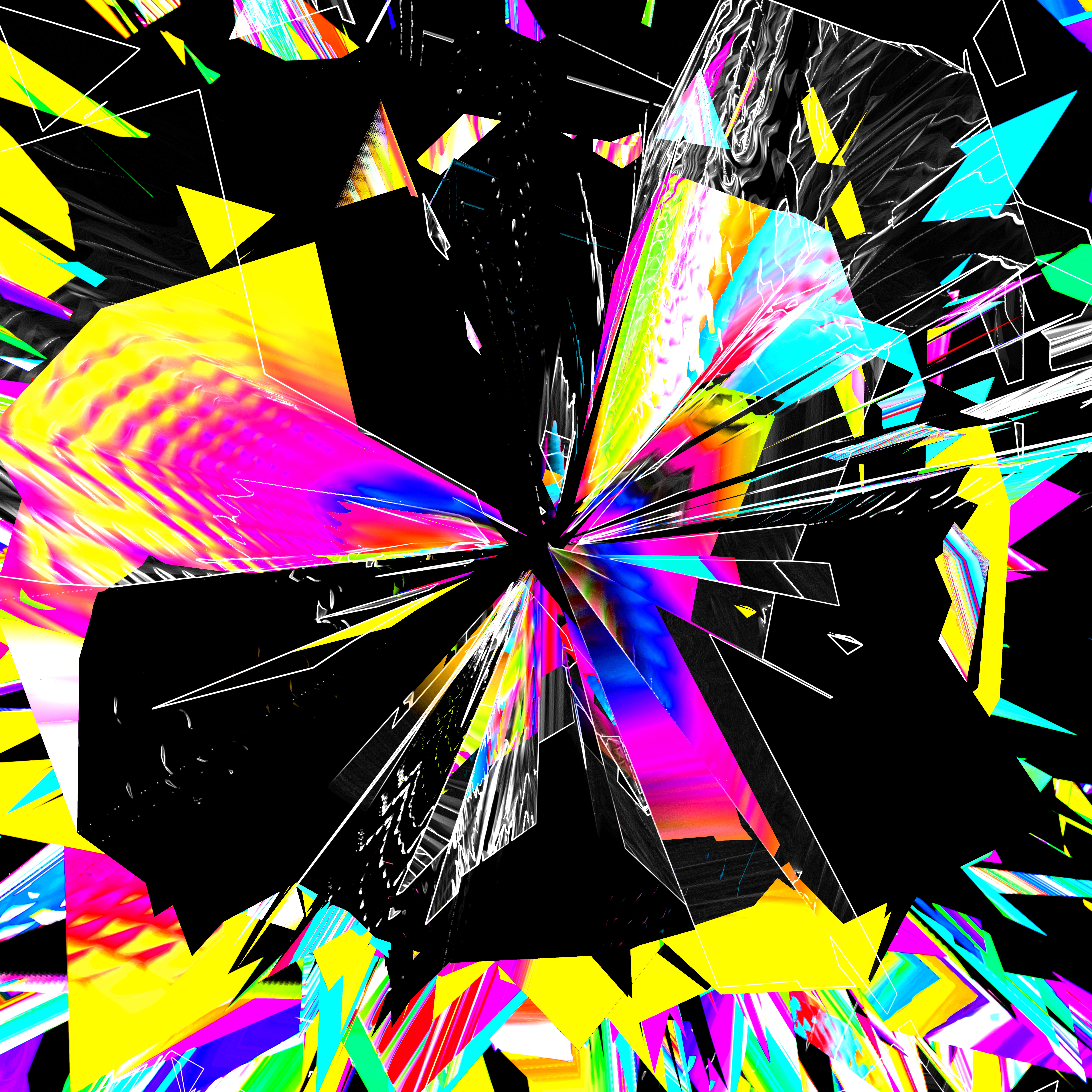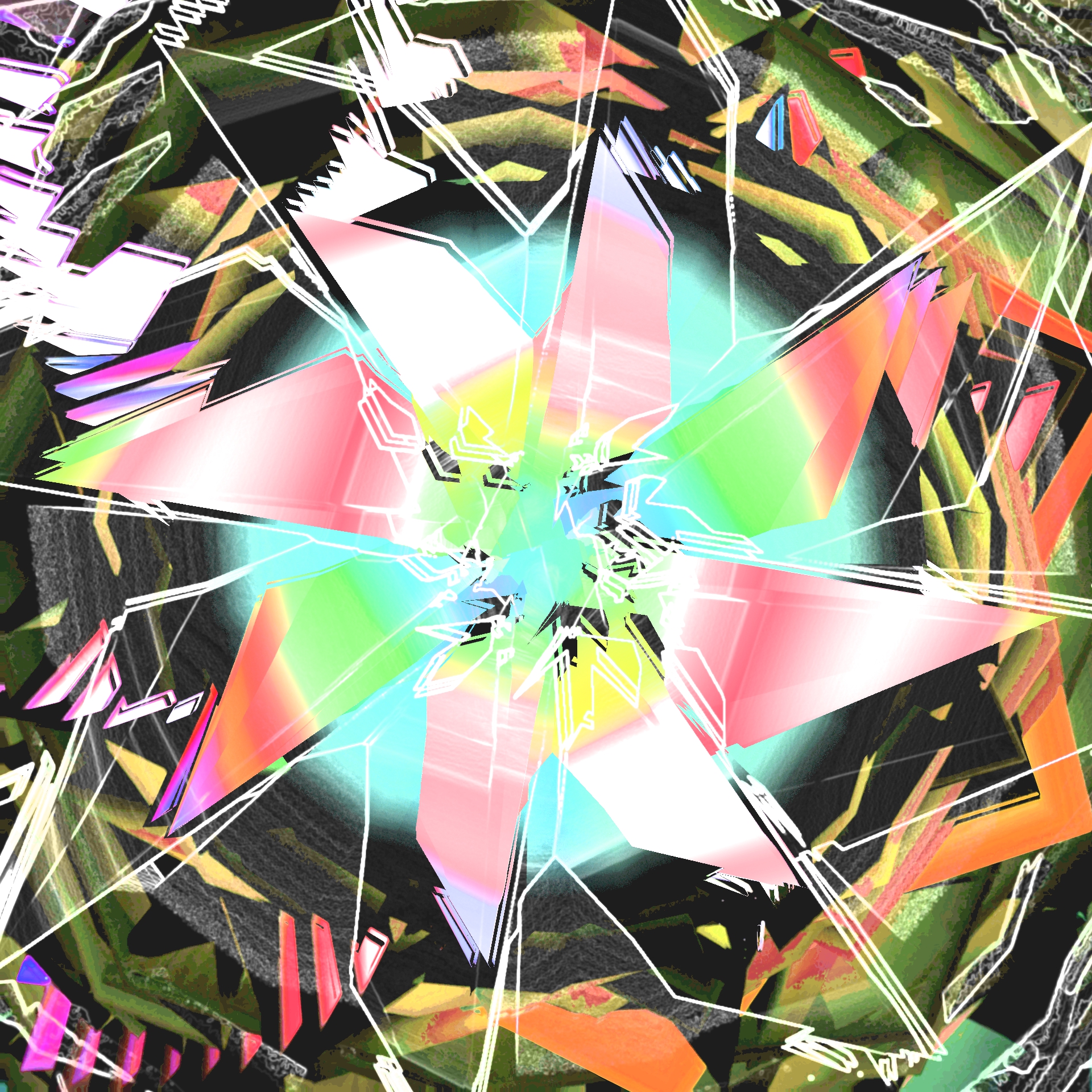 In the art world, we can discover psychedelia by exploring symmetry. But as is often found in the case of a real psychedelic experience, noise, imperfections, and alien imbalance in the visuals play a key role. I strive to avoid a psychedelia that is fitted with straight edges and jagged lines. In this study, I aim to create a psychedelia that is loosely symmetrical and highly colorful- overlapping geometries and colored layers fuse together to generate unexpected hues and forms, while still maintaining a consistent balance of whites, blacks and greys in the composition. While from afar the piece appears to be smooth and flowing by design, looking closely will reveal a deceptively glitchy pixel displacement in certain areas of the piece, giving it a certain digital touch that I love so much.