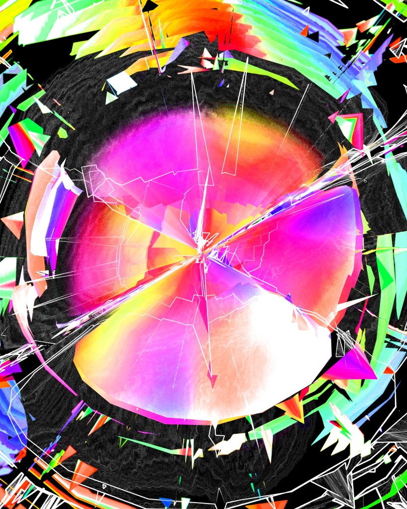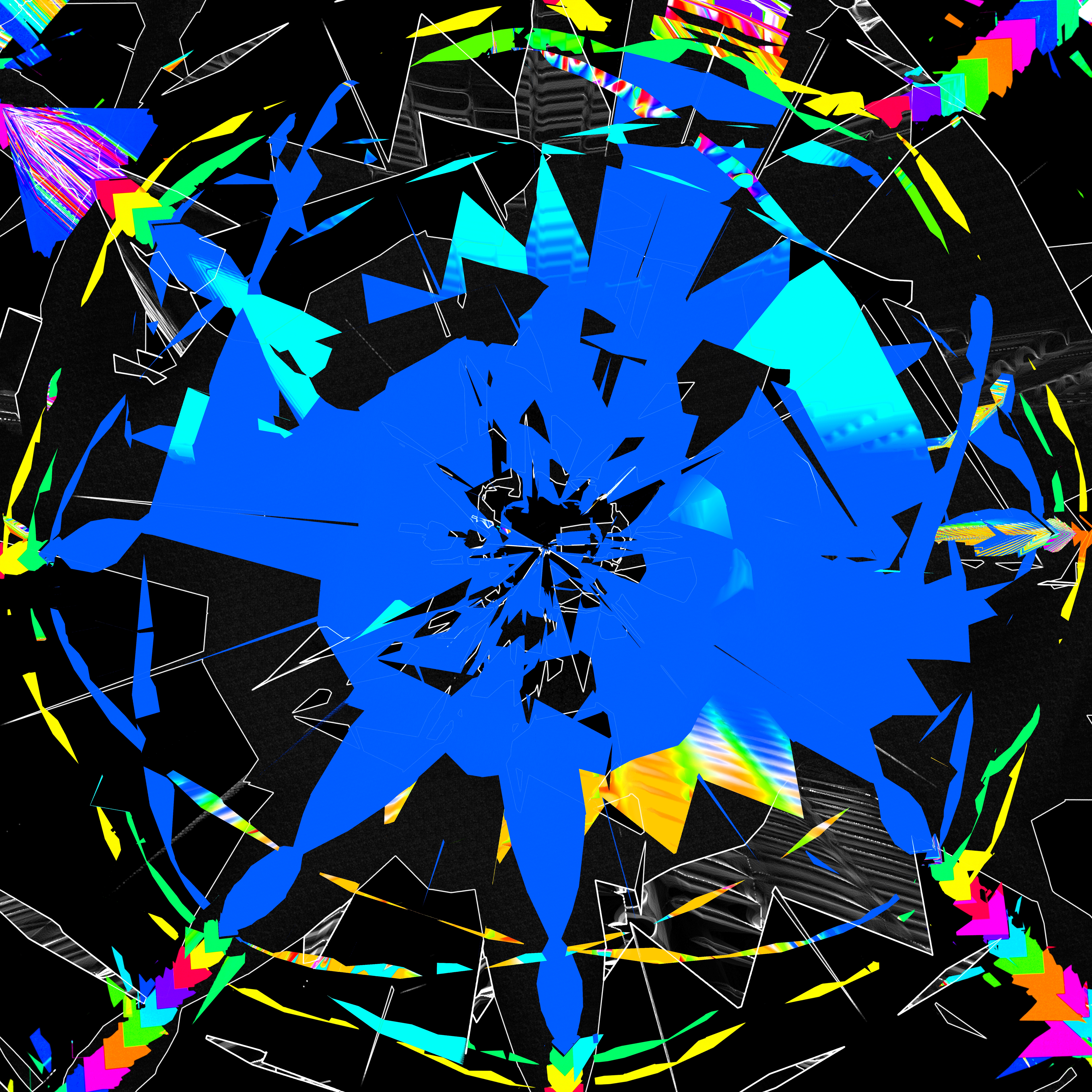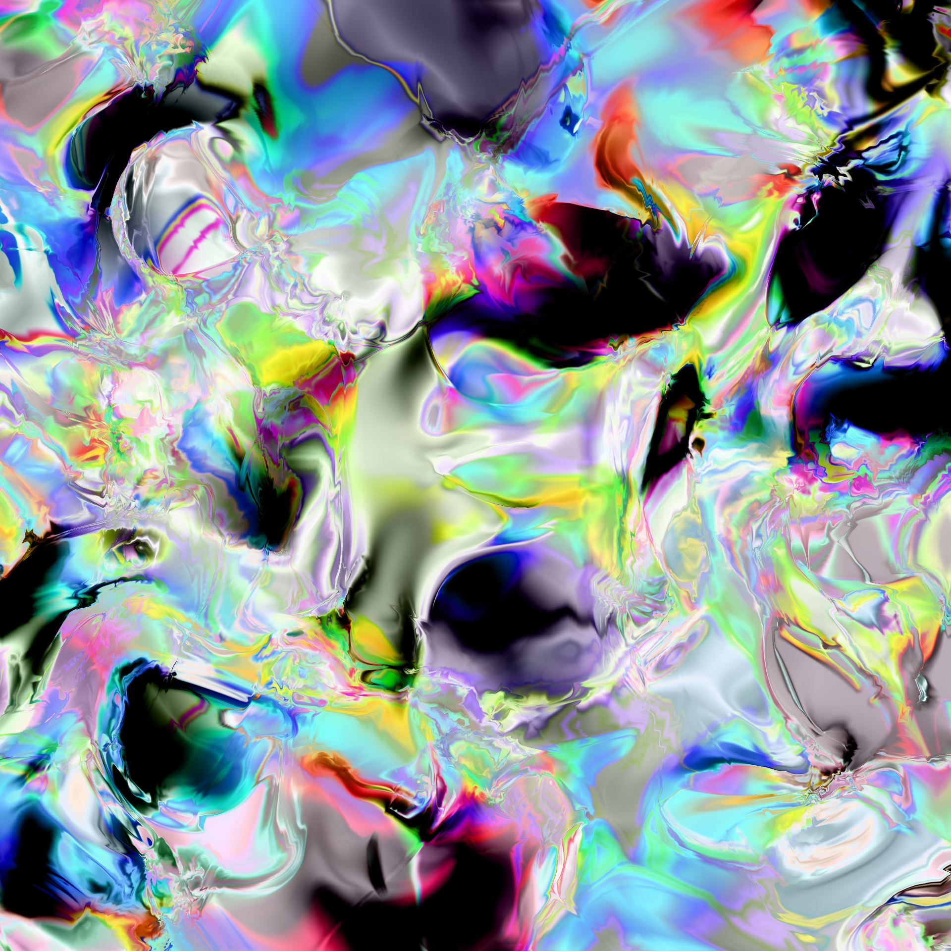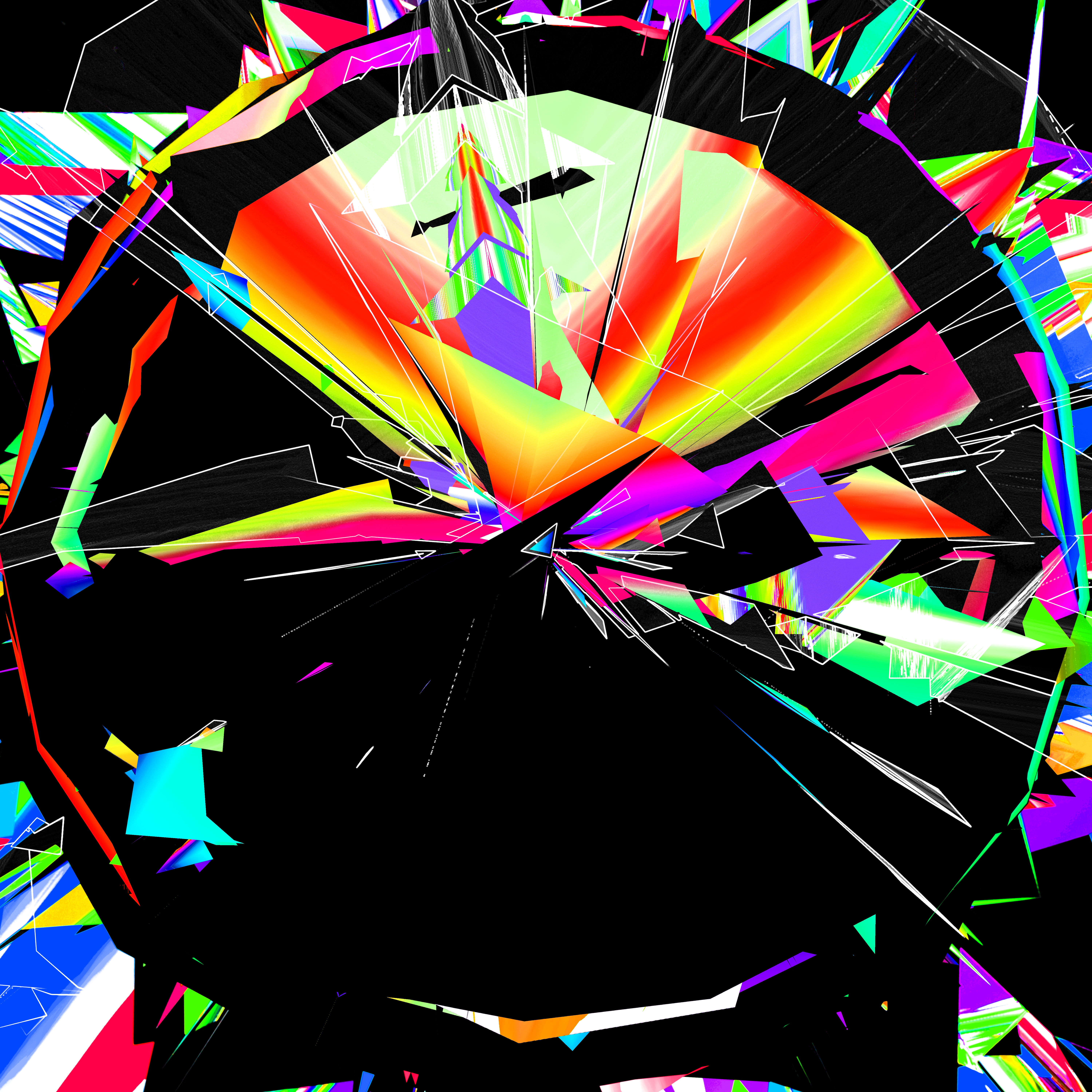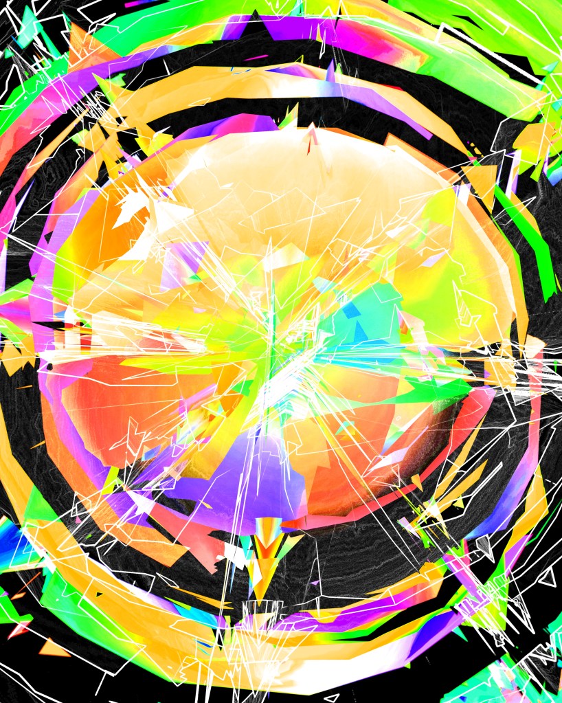 In the art world, we can discover psychedelia by exploring symmetry. But as is often found in the case of a real psychedelic experience, noise, imperfections, and alien imbalance in the visuals play a key role. I strive to avoid a psychedelia that is fitted with straight edges and jagged lines. In this study, I aim to create a psychedelia that is loosely symmetrical and highly colorful- overlapping geometries and colored layers fuse together to generate unexpected hues and forms, while still maintaining a consistent balance of whites, blacks and greys in the composition. While from afar the piece appears to be smooth and flowing by design, looking closely will reveal a deceptively glitchy pixel displacement in certain areas of the piece, giving it a certain digital touch that I love so much.