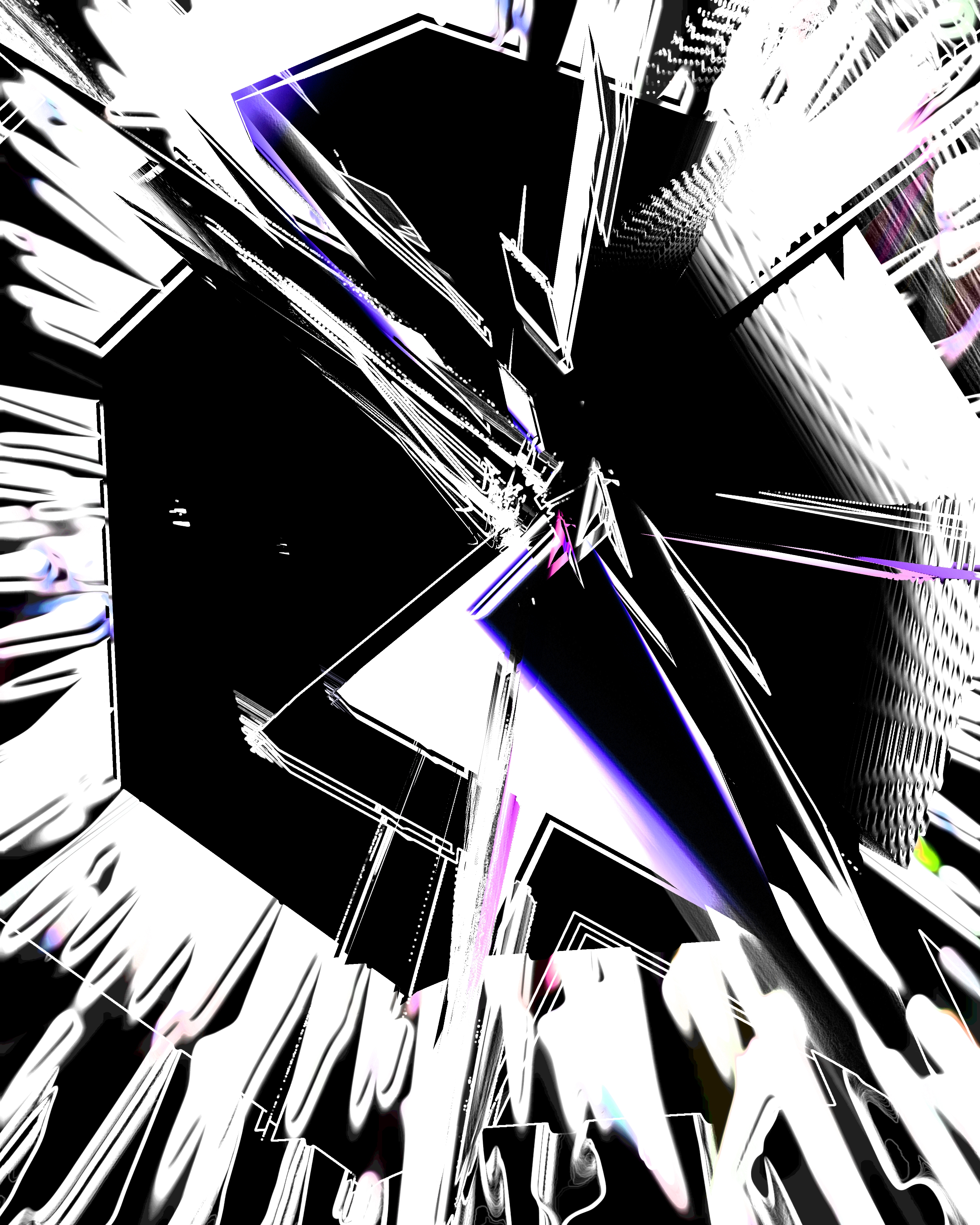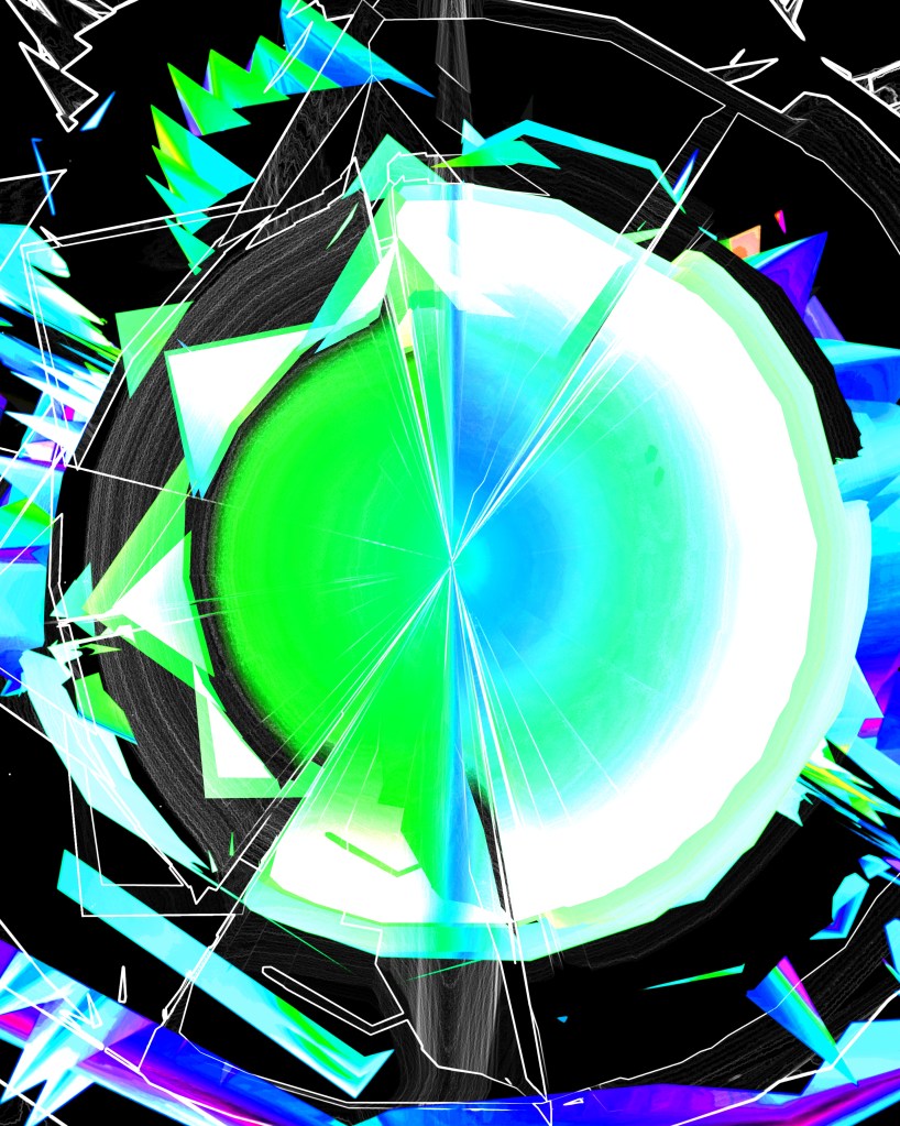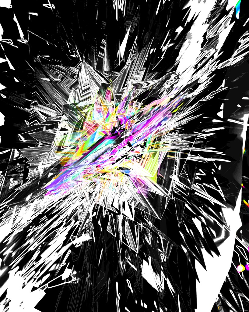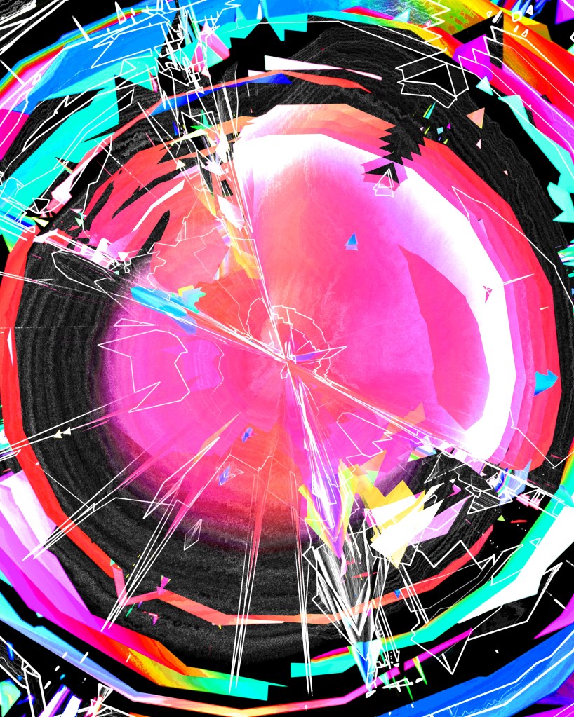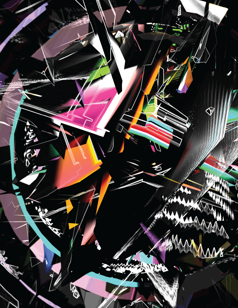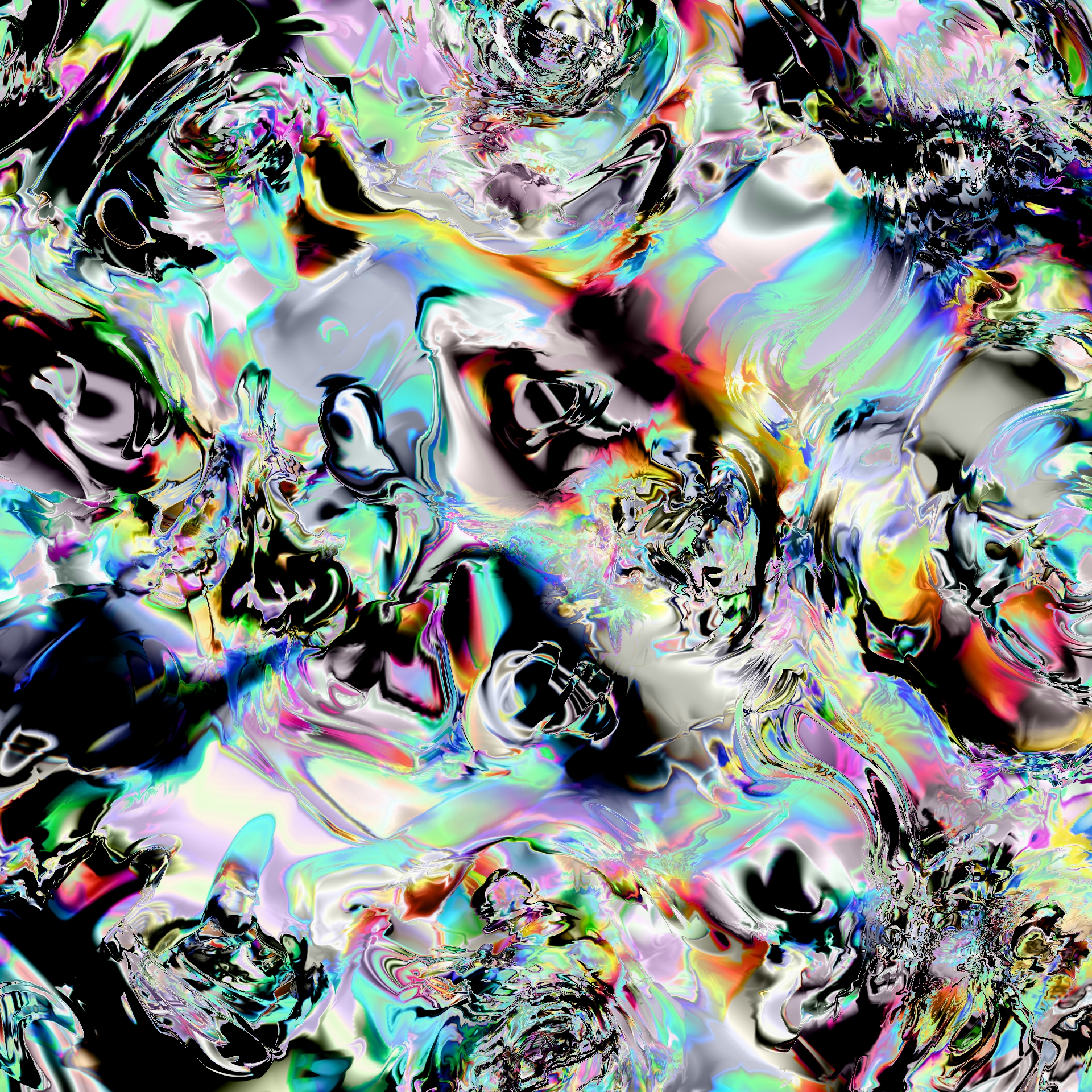 In the art world, we can discover psychedelia by exploring symmetry. But as is often found in the case of a real psychedelic experience, noise, imperfections, and alien imbalance in the visuals play a key role. I strive to avoid a psychedelia that is fitted with straight edges and jagged lines. In this study, I aim to create a psychedelia that is loosely symmetrical and highly colorful- overlapping geometries and colored layers fuse together to generate unexpected hues and forms, while still maintaining a consistent balance of whites, blacks and greys in the composition. While from afar the piece appears to be smooth and flowing by design, looking closely will reveal a deceptively glitchy pixel displacement in certain areas of the piece, giving it a certain digital touch that I love so much.