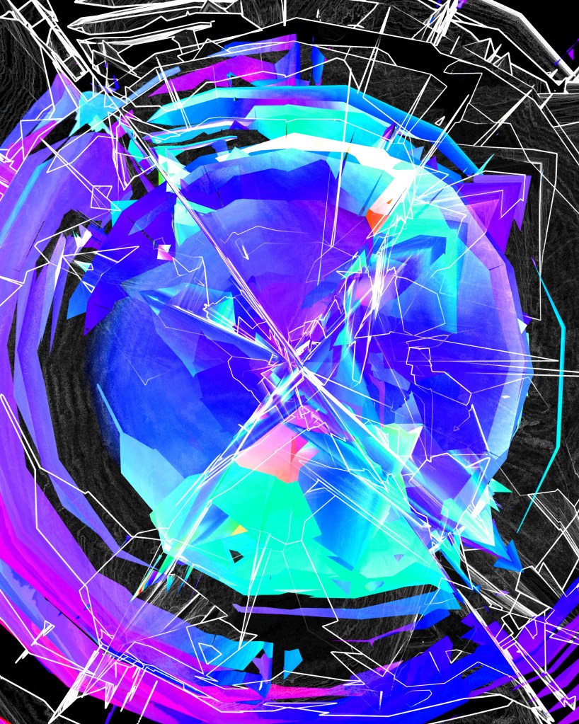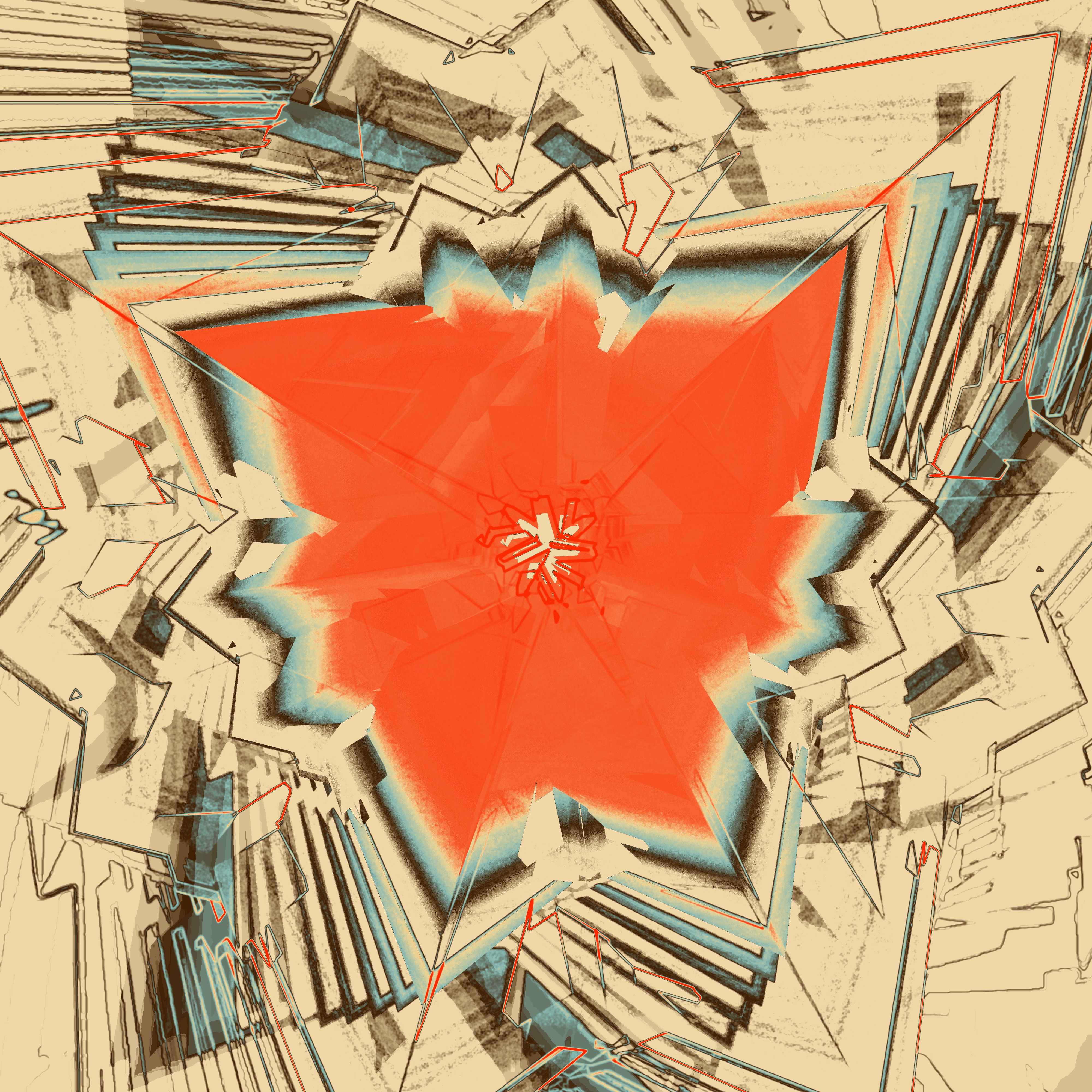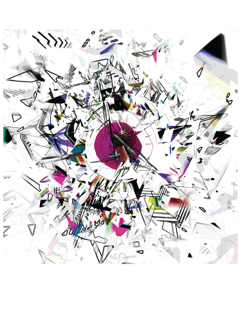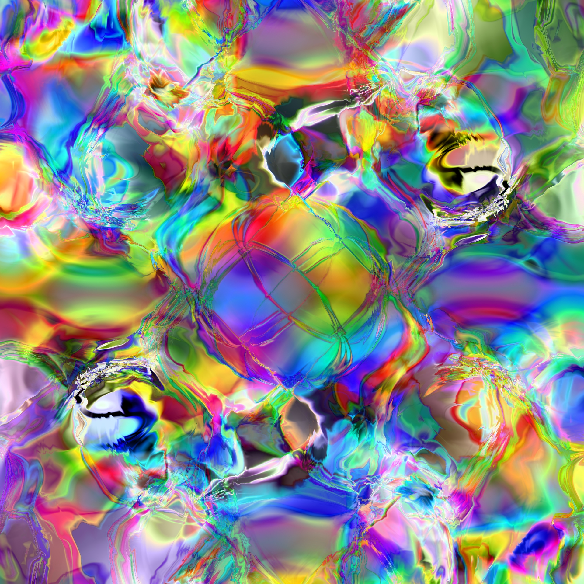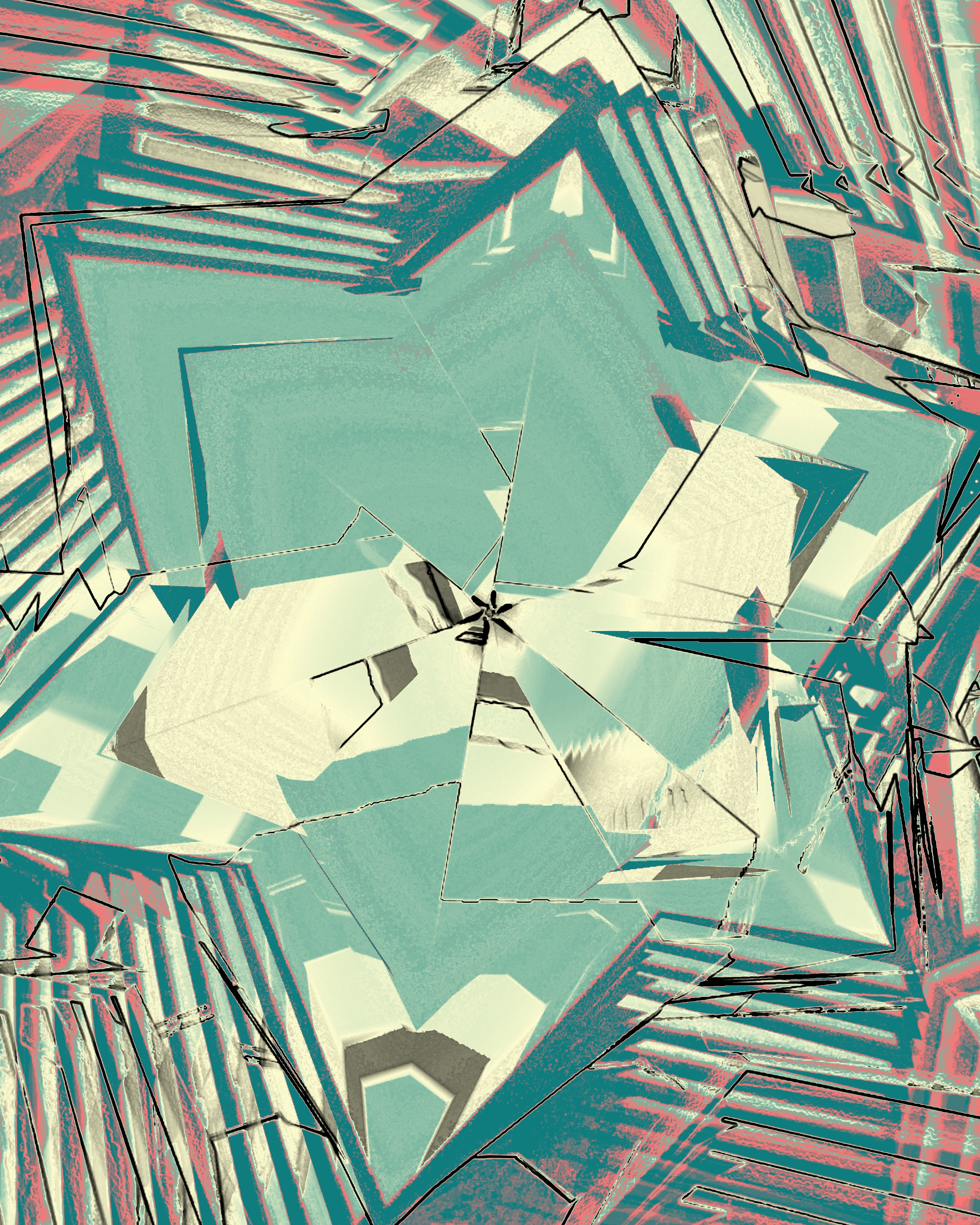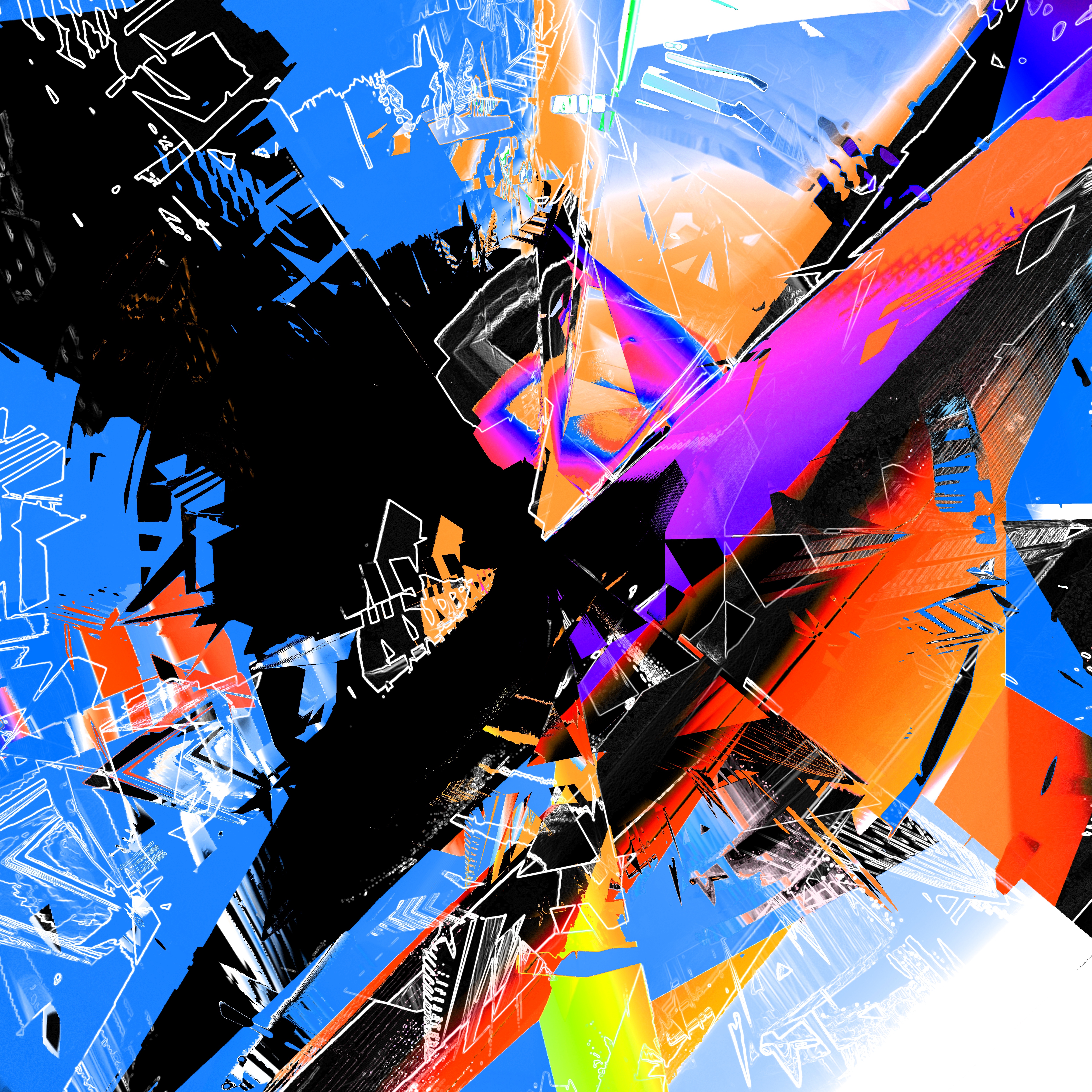 In the art world, we can discover psychedelia by exploring symmetry. But as is often found in the case of a real psychedelic experience, noise, imperfections, and alien imbalance in the visuals play a key role. I strive to avoid a psychedelia that is fitted with straight edges and jagged lines. In this study, I aim to create a psychedelia that is loosely symmetrical and highly colorful- overlapping geometries and colored layers fuse together to generate unexpected hues and forms, while still maintaining a consistent balance of whites, blacks and greys in the composition. While from afar the piece appears to be smooth and flowing by design, looking closely will reveal a deceptively glitchy pixel displacement in certain areas of the piece, giving it a certain digital touch that I love so much.