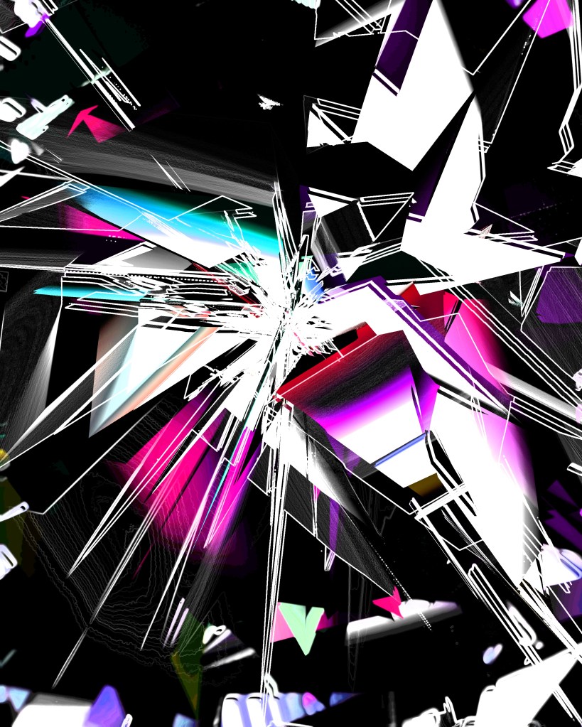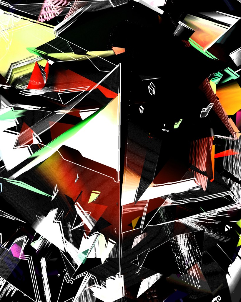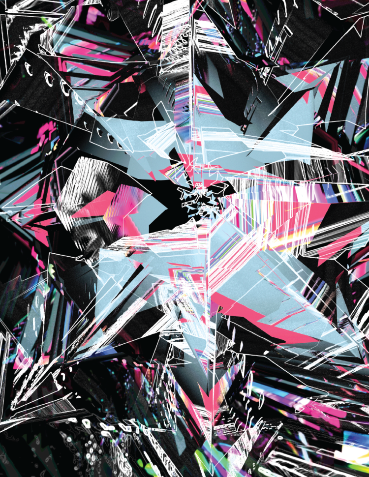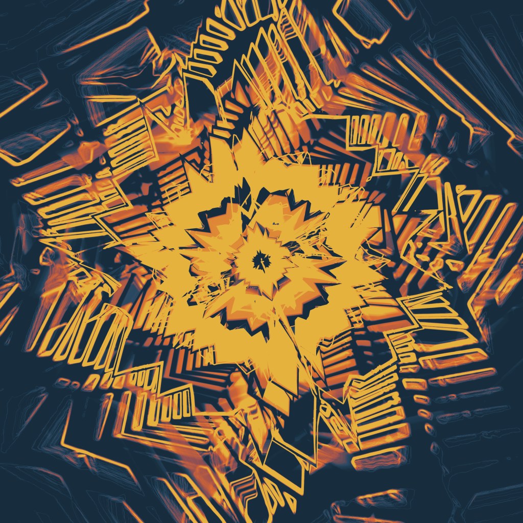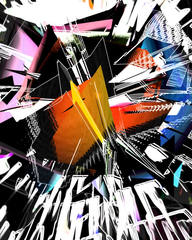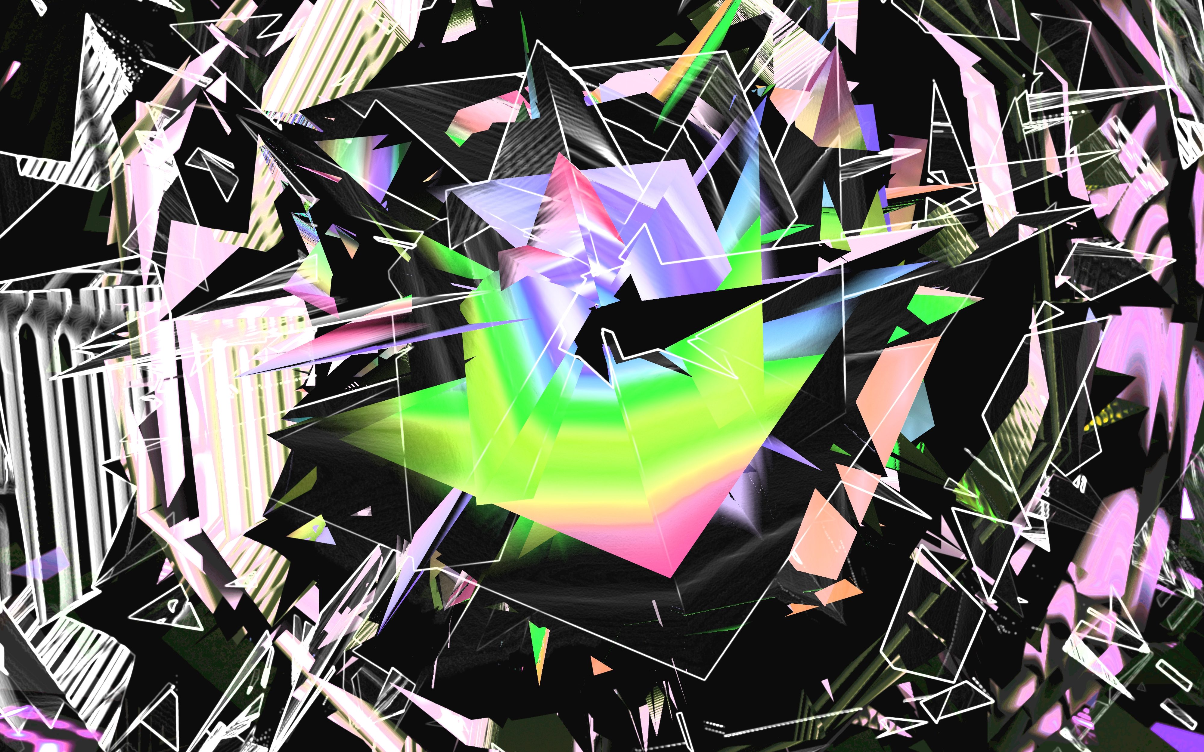 In the art world, we can discover psychedelia by exploring symmetry. But as is often found in the case of a real psychedelic experience, noise, imperfections, and alien imbalance in the visuals play a key role. I strive to avoid a psychedelia that is fitted with straight edges and jagged lines. In this study, I aim to create a psychedelia that is loosely symmetrical and highly colorful- overlapping geometries and colored layers fuse together to generate unexpected hues and forms, while still maintaining a consistent balance of whites, blacks and greys in the composition. While from afar the piece appears to be smooth and flowing by design, looking closely will reveal a deceptively glitchy pixel displacement in certain areas of the piece, giving it a certain digital touch that I love so much.