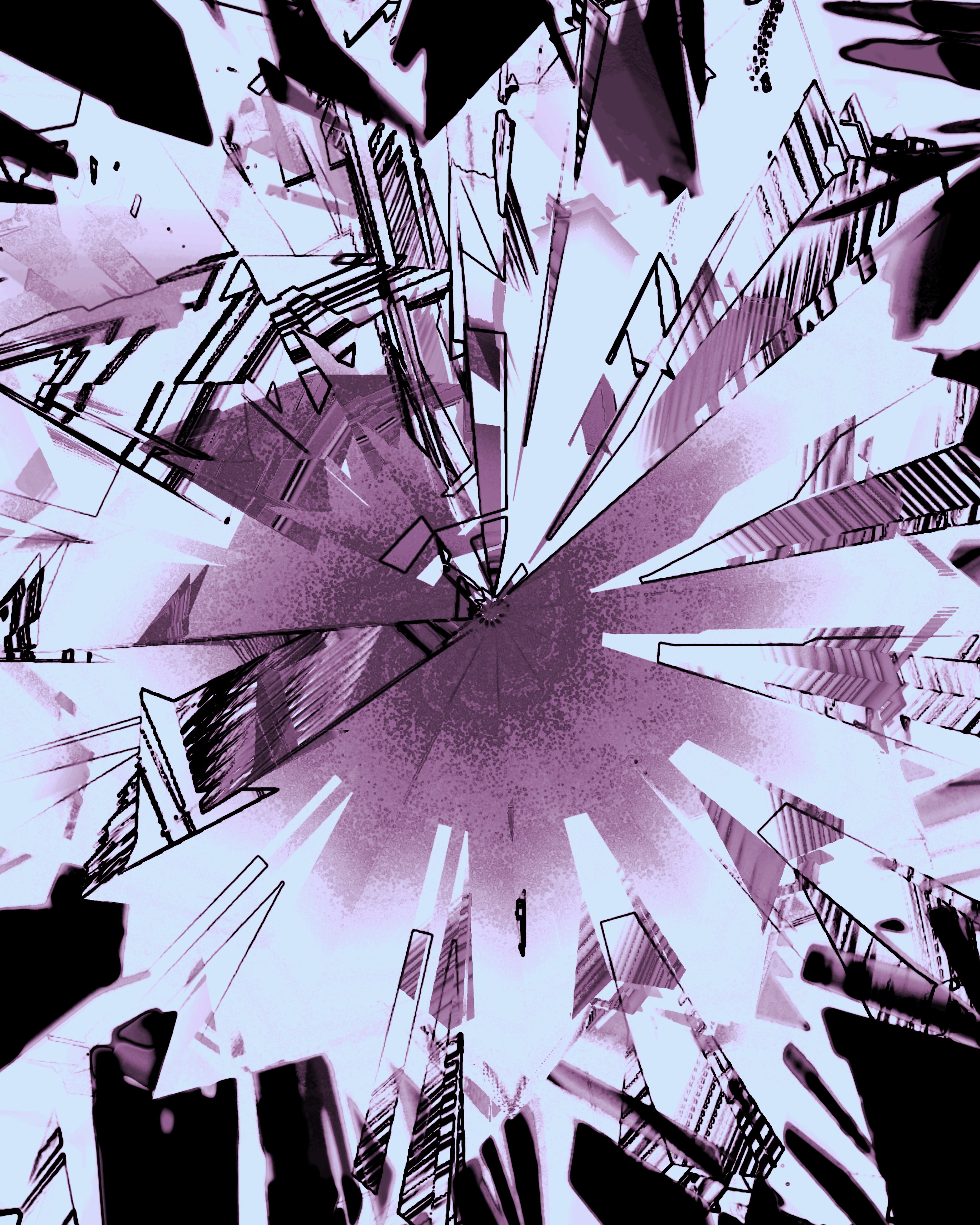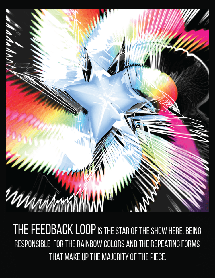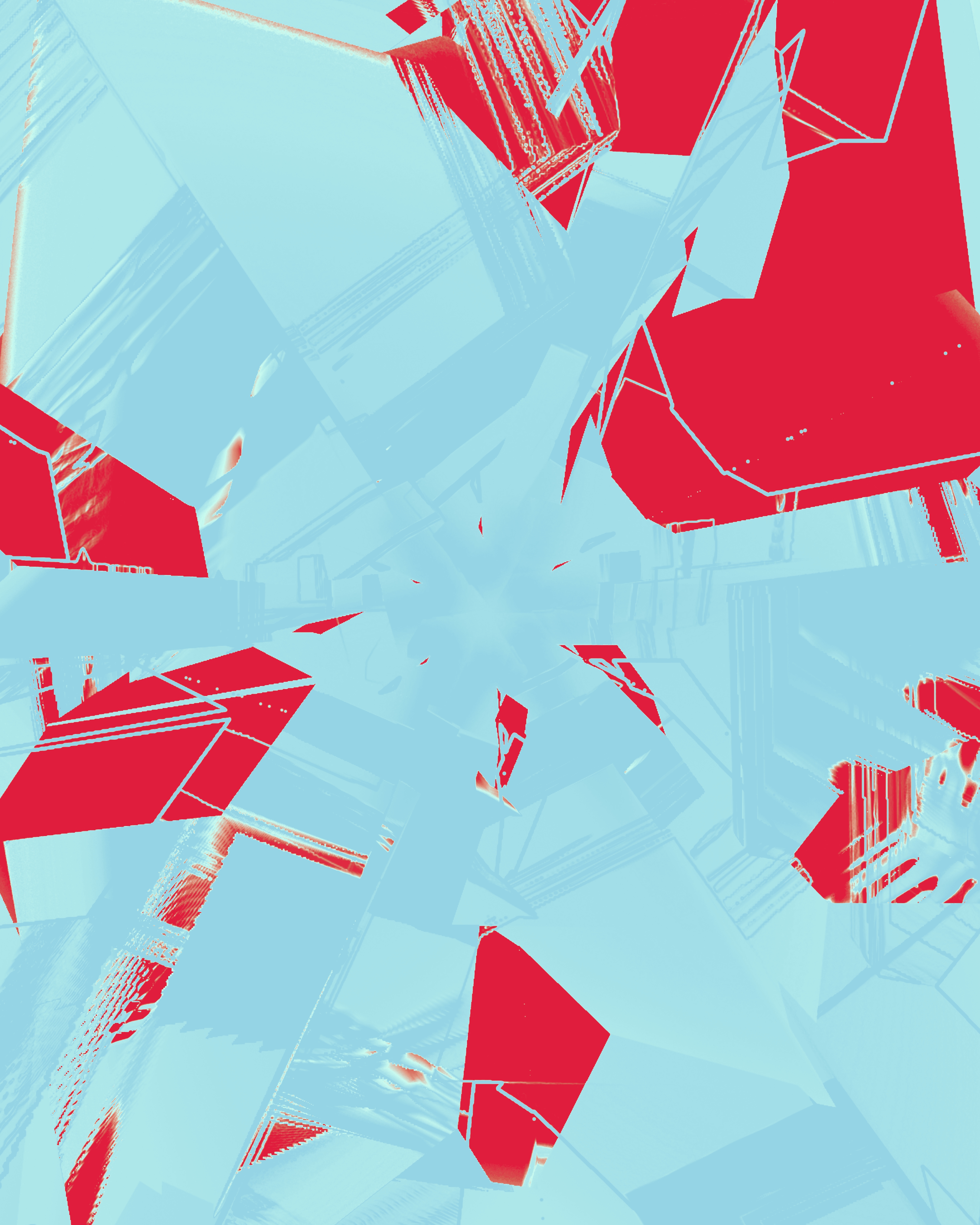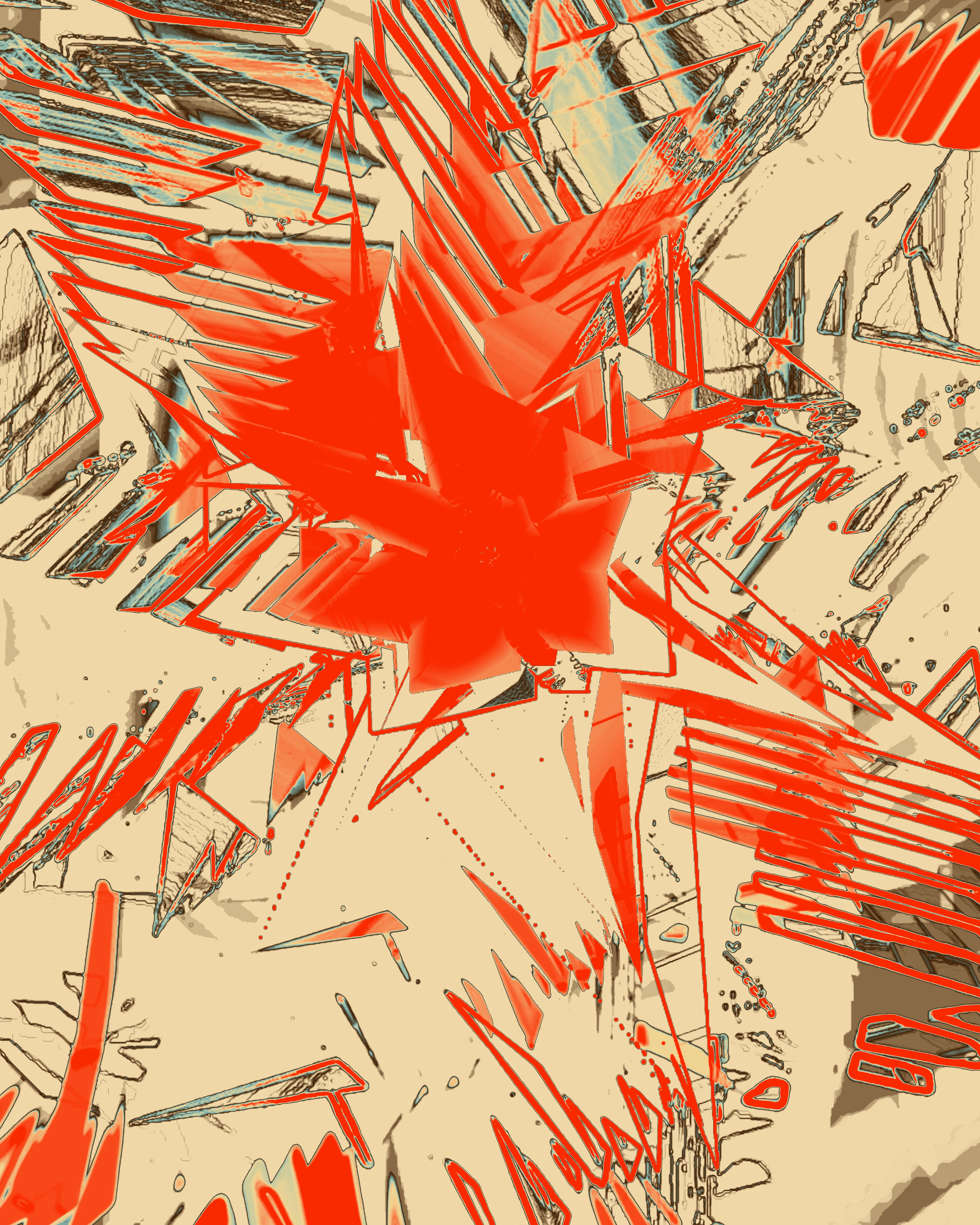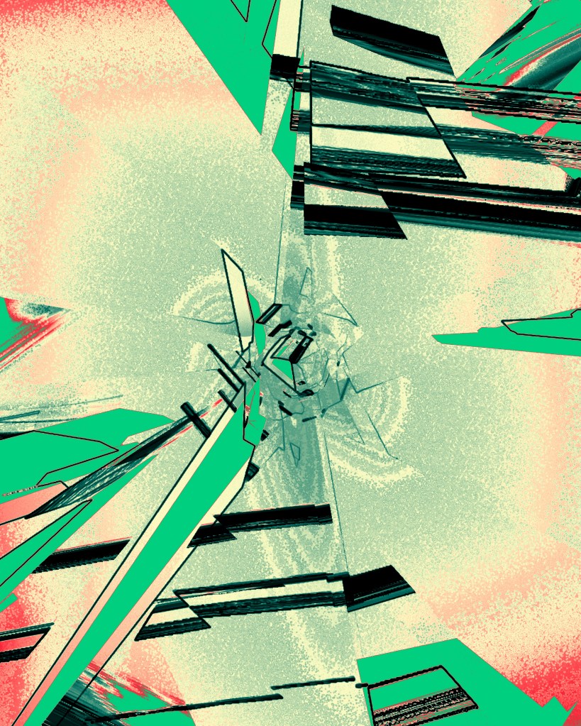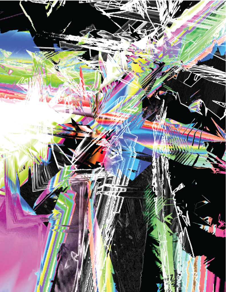 In the art world, we can discover psychedelia by exploring symmetry. But as is often found in the case of a real psychedelic experience, noise, imperfections, and alien imbalance in the visuals play a key role. I strive to avoid a psychedelia that is fitted with straight edges and jagged lines. In this study, I aim to create a psychedelia that is loosely symmetrical and highly colorful- overlapping geometries and colored layers fuse together to generate unexpected hues and forms, while still maintaining a consistent balance of whites, blacks and greys in the composition. While from afar the piece appears to be smooth and flowing by design, looking closely will reveal a deceptively glitchy pixel displacement in certain areas of the piece, giving it a certain digital touch that I love so much.